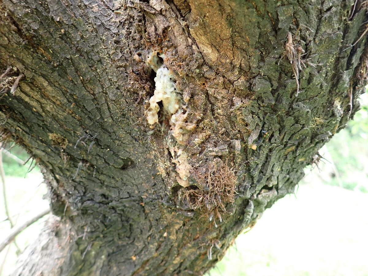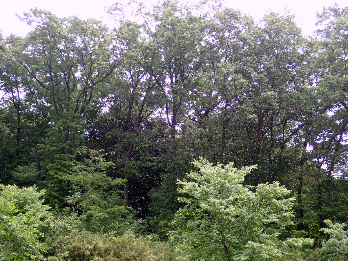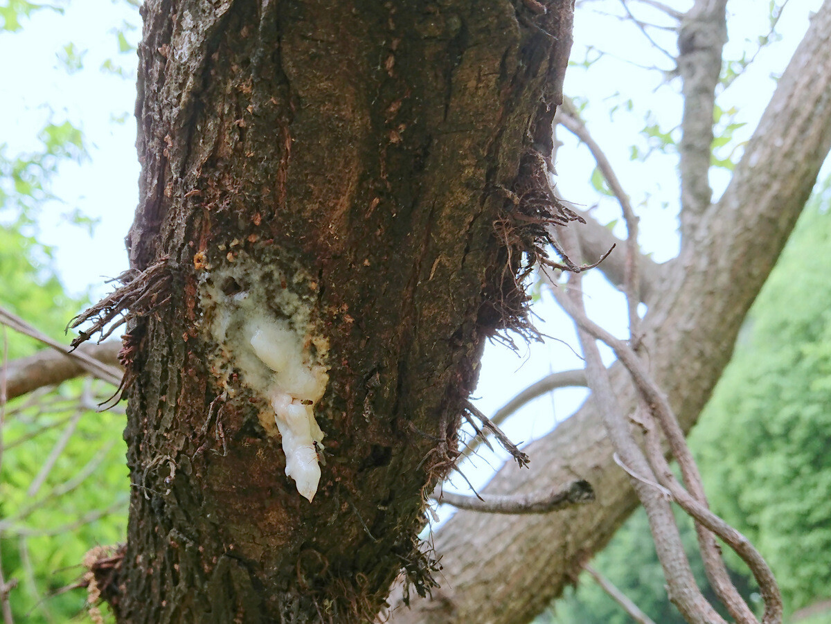 植物調査枠のヤナギの樹液にスズメバチが寄っていました。