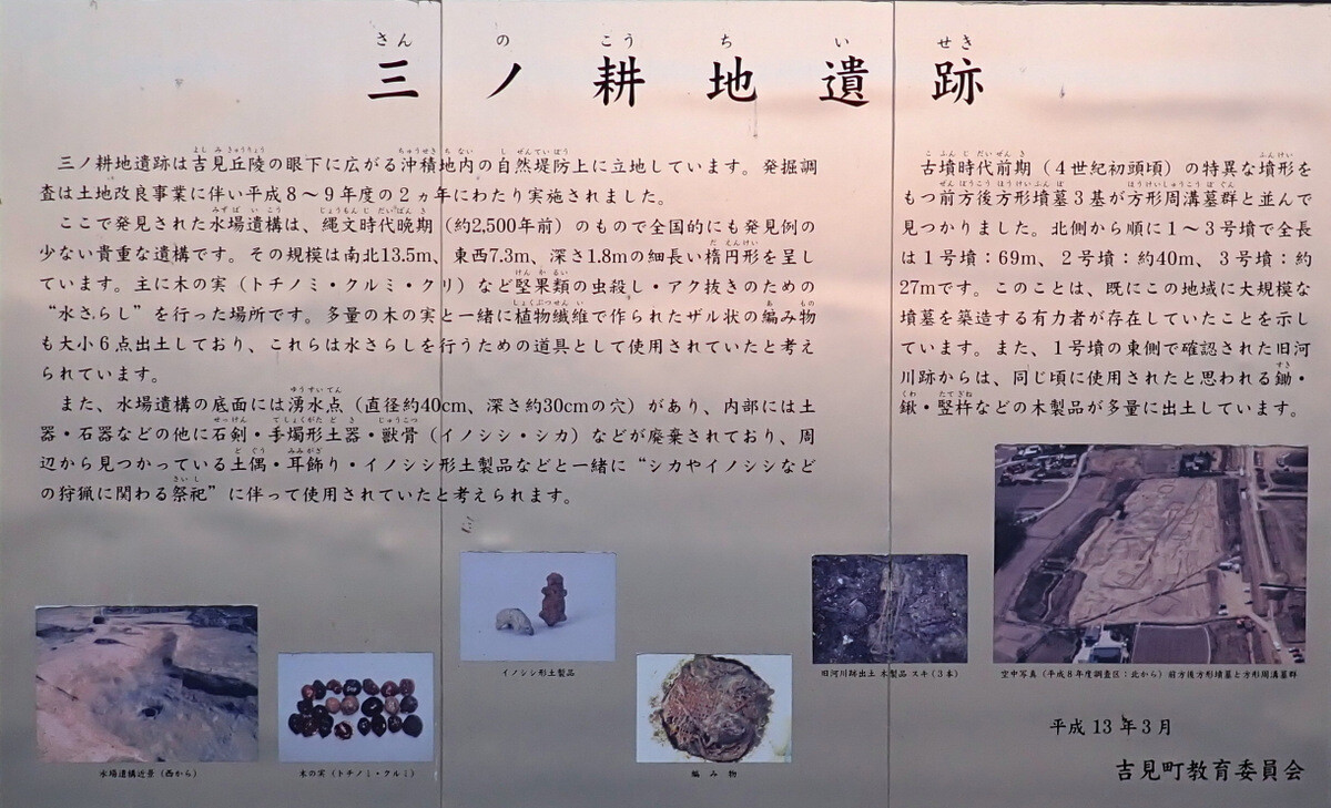 近くにあった吉見町三ノ耕地遺跡の看板(吉見町教育委員会)