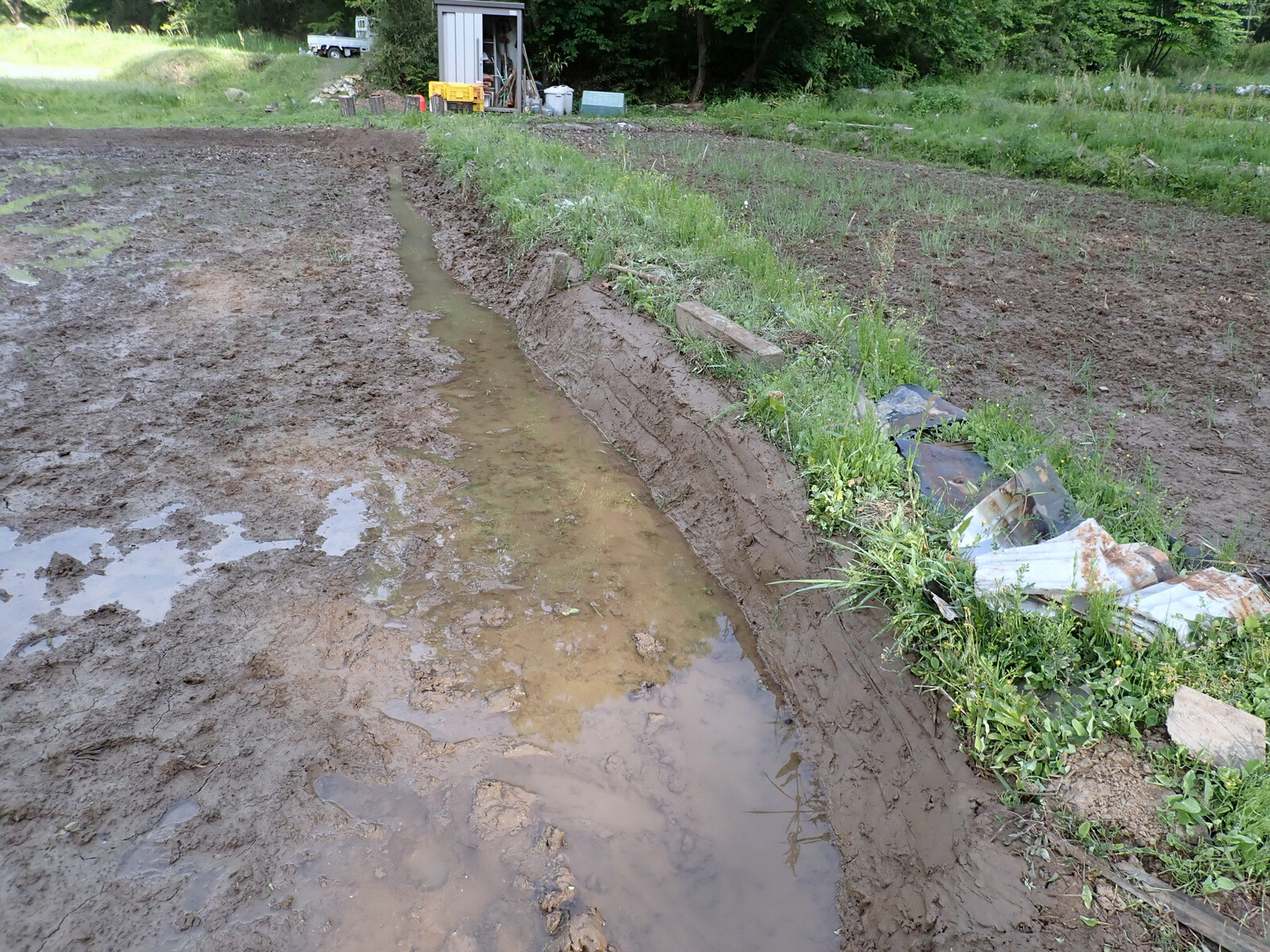 中の田んぼにも水が溜まっています。