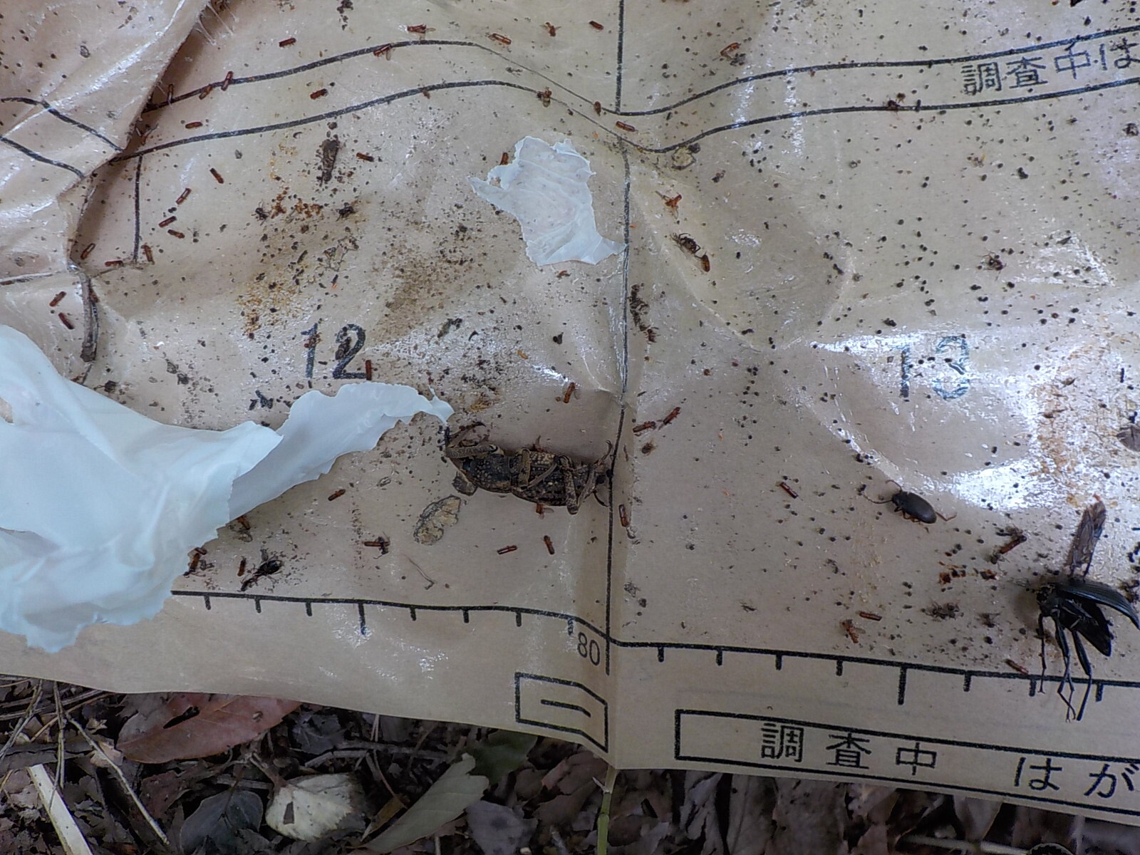 ・「半枯れ」=衰退木?公益財団法人東京都公園協会公園事業部技術管理課研究開発係「ナラ枯れ被害対策の取組について 」の2頁被害発見のプロセスによれば被害木を全枯れ、半枯れ、 フラスありに分けていますが、 市民の森保全クラブ作業エリアでテープをまいたもの全てが被害木ではないかもしれ ませんので、 テープをまいた8本とその周辺の木を調べて被害木を確定する必要 があります。 市民ができることとして、被害木の発見のほか、町田市が実施している「ナラ枯れ・ カシナガ捕獲大作戦に参加しませんか 」のクリアファイルでつくるトラップの設置参考になりました。 作り方の動画もあります。多摩丘陵の自然を守る会の観察記録や、 忠生公園ボランティア・プロジェクトチーム提案「ナラ枯れ・ カシナガ捕獲大作戦from忠生公園 ~未来へまちだのみどりを伝えようプロジェクト~ 」、 そこで紹介されている静岡県森林・林業研究センターのYouTube動画 が参考になりました。(7月29日、会員宛メールから引用)
