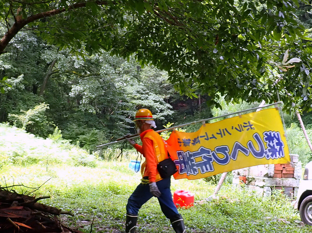 対策は、カシナガの新成虫が6〜8月ごろ、木の中から出てくる習性を利用し、新たな樹木に飛び移るところで、樹木に巻いた粘着シート「かしながホイホイ」で捕獲し、個体数を減らすことだ。……樹木には、カシナガ以外にも他のキクイムシや昆虫が入り込んでいるケースがあるという。このため、森林総研の専門家が、カシナガによる枯死かどうか、つまようじ一本で見分ける方法を伝授した。……職員たちは森林内で、つまようじでカシナガが開けた穴を探しながら、コナラなどの樹木にかしながホイホイを巻き付ける実技に取り組んだ。