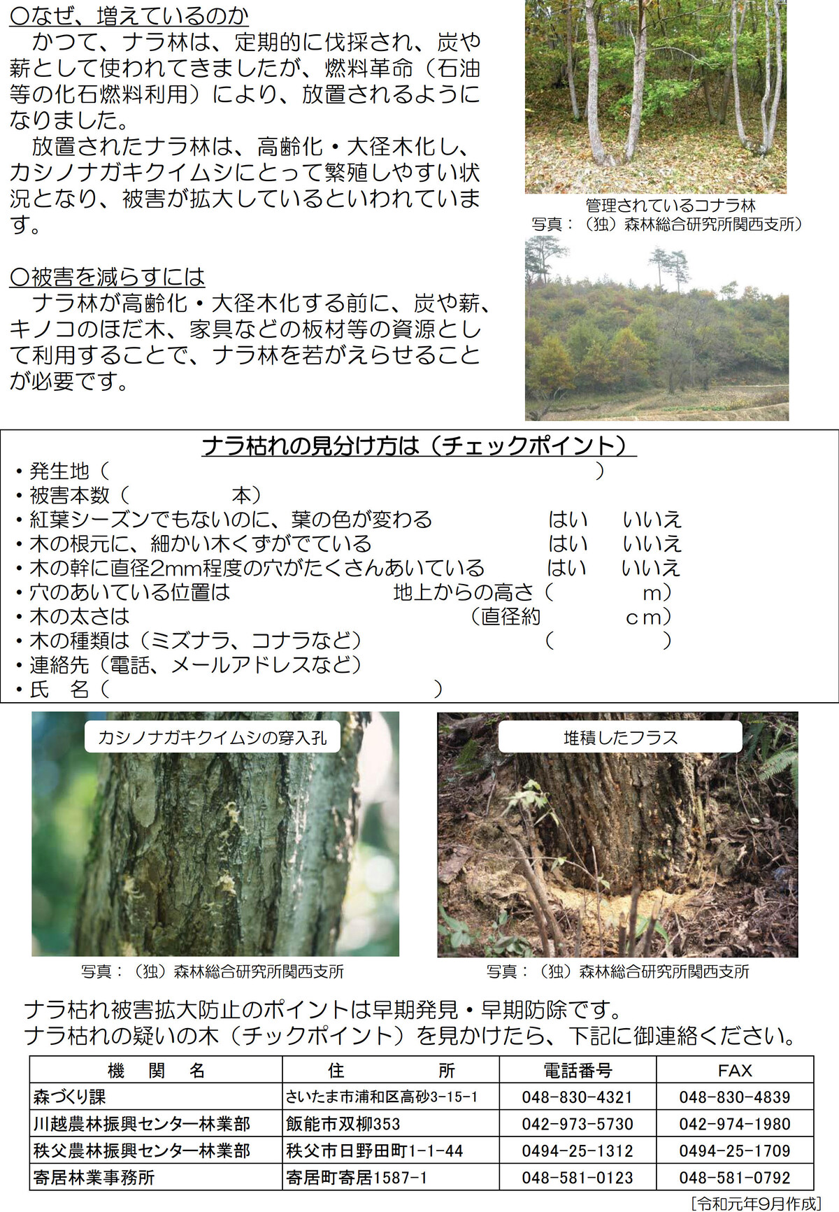 森林総研昆虫管理研究室の衣浦晴生室長は「都市部では公園や低山で被害が見られる。今後は市民ボランティアに協力を呼び掛け、ナラ枯れを見つけて初期の段階で対処していく方法について考えたい」と意欲を示した。