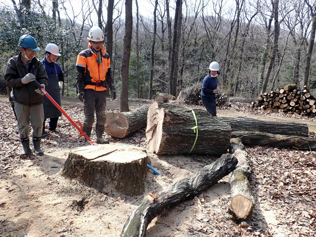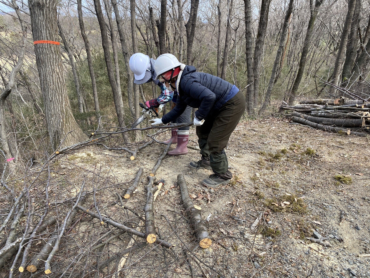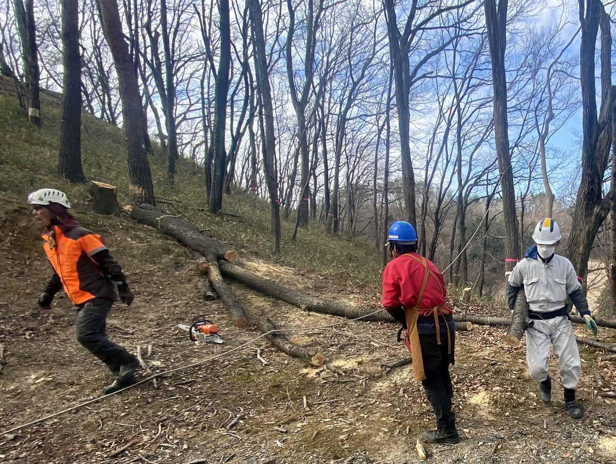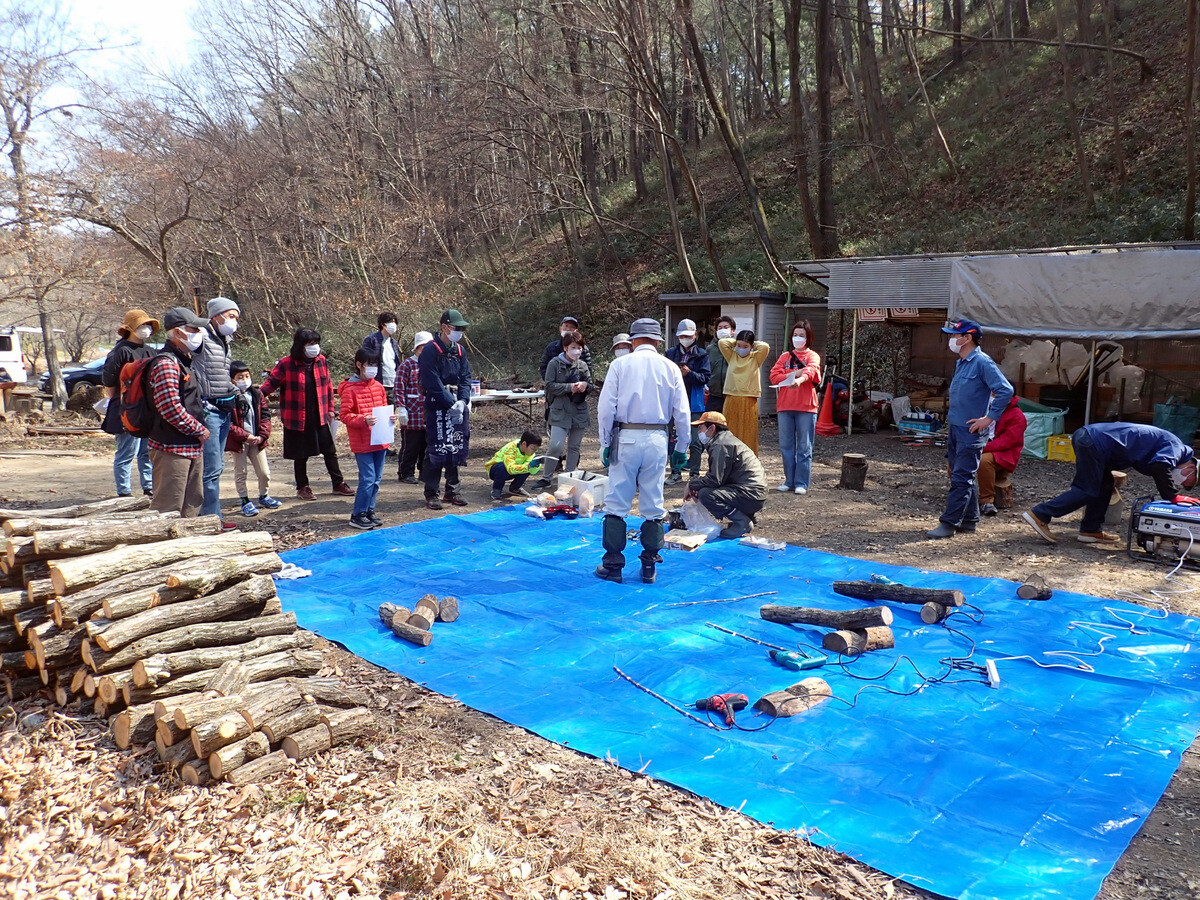 薪づくりのための安全作業講習会と間伐木の搬出