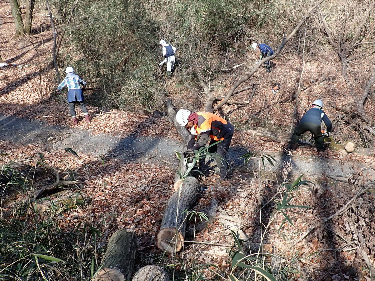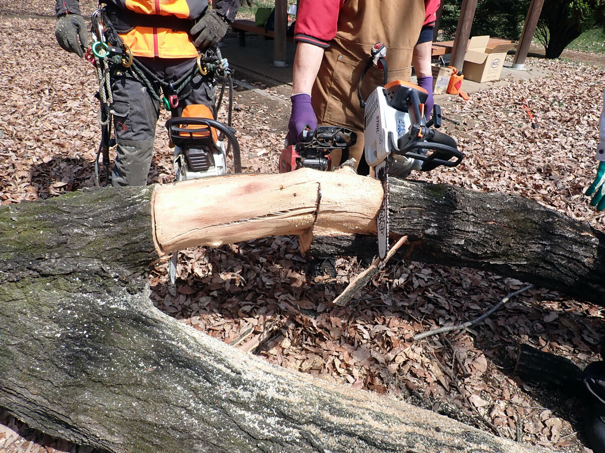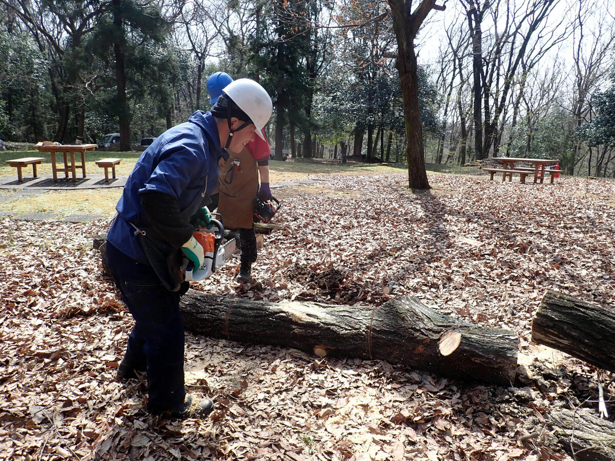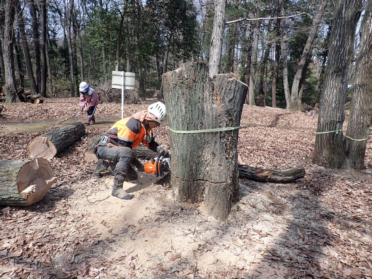 薪づくりのための安全作業講習会と間伐木の搬出