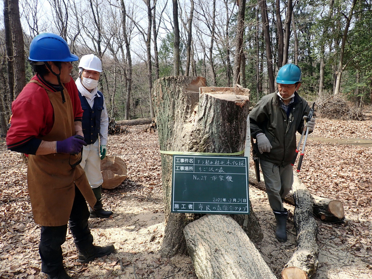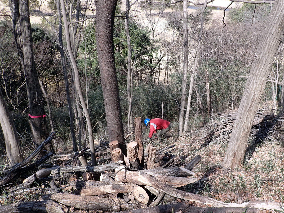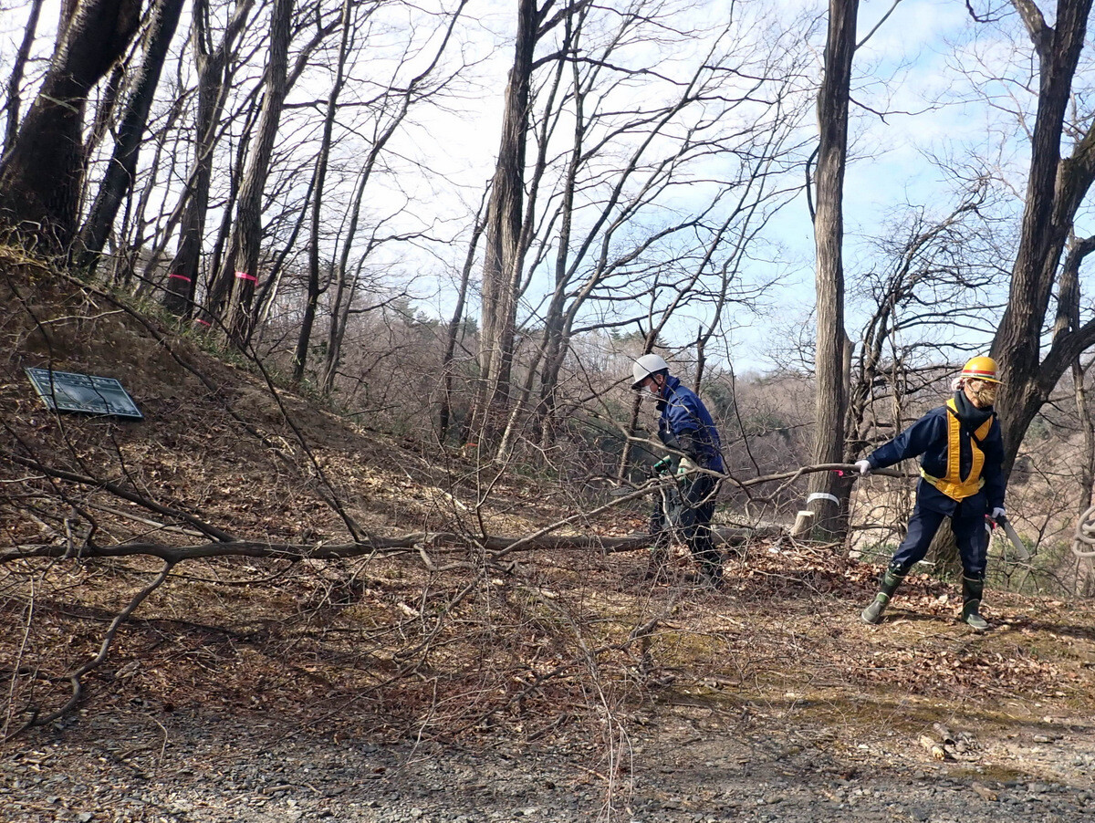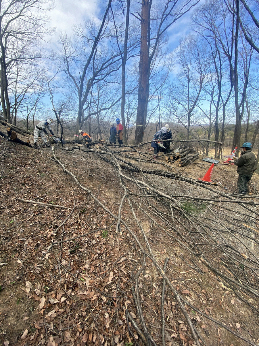 薪づくりのための安全作業講習会と間伐木の搬出