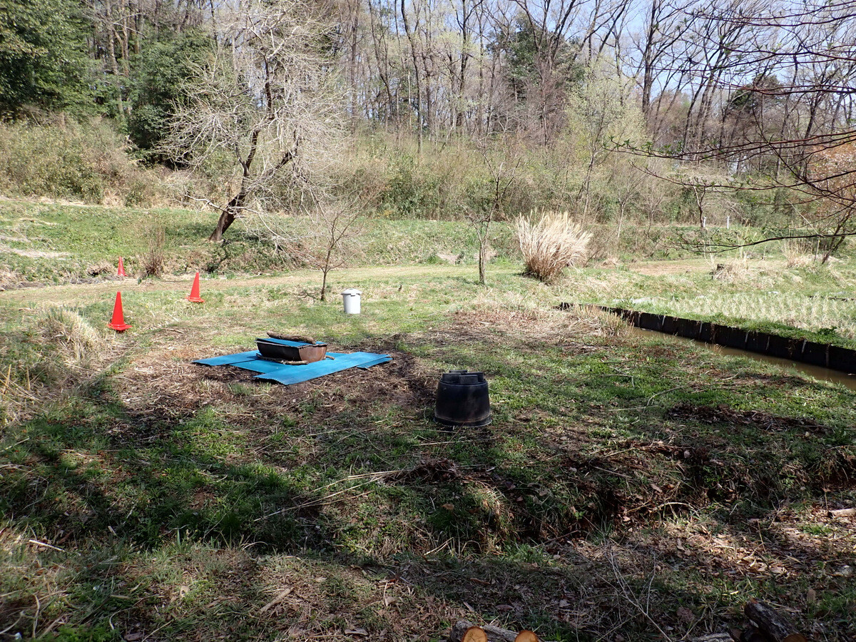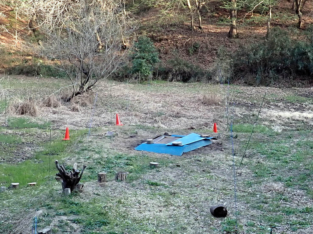 ⑦トウキョウサンショウウオのアライグマによる捕殺、イノシシによる路肩や土手の掘り返し、シカの樹皮摂食など入山谷津でも被害が拡大している。タヌキ、イタチ、アナグマ、ウサギ、ネコは昼間見たことがあるが夜間の活動は不明。トレイルカメラを設置して野生動物の活動や生態を撮影する。