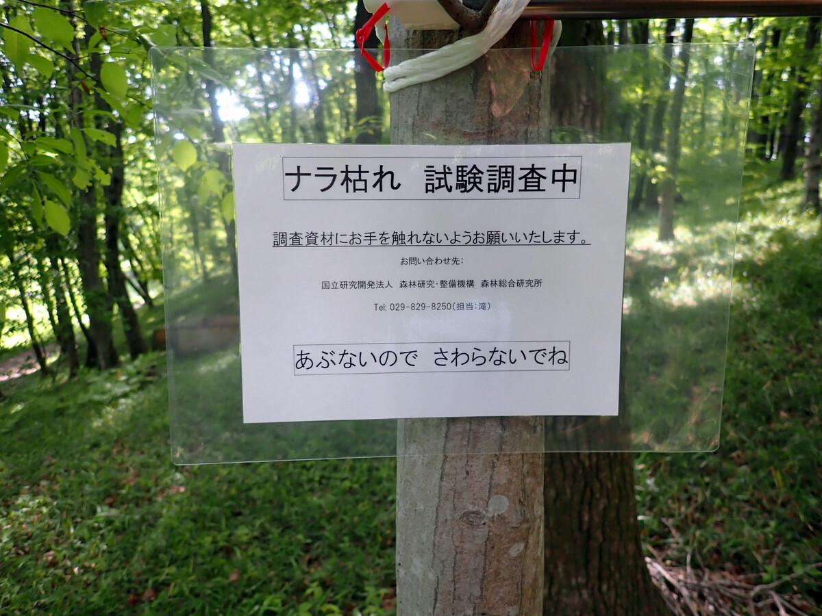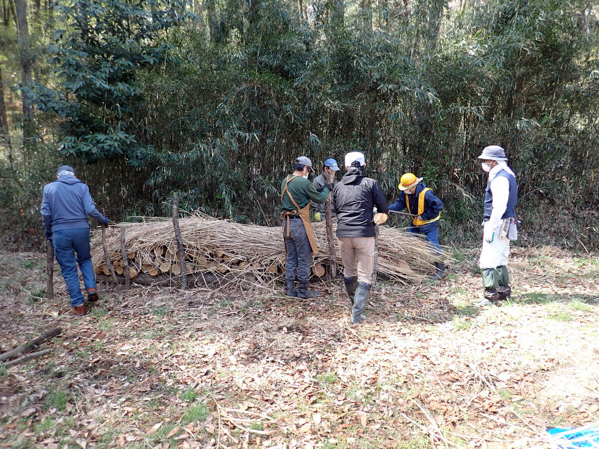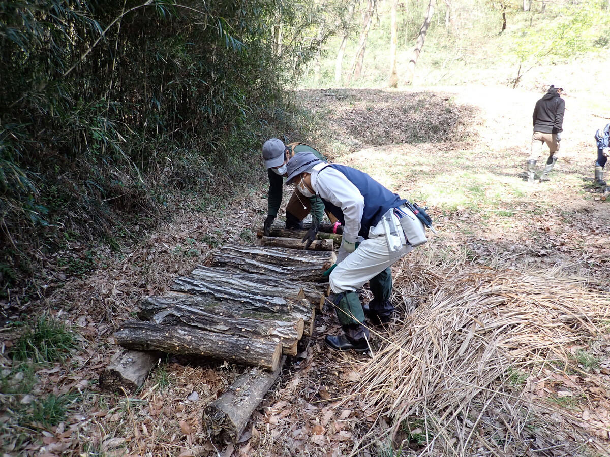 コナラ林では16年度から「市民の森のコナラ林若がえりプロジェクト」を、アカマツ林では19年度から「アカマツ林育成プロジェクト」を実施してきたが、昨年度後半、市民の森内でカシノナガキクイムシによるナラ枯れがまん延する事態となった(コナラのフラス木は判明しているだけで139本、その内、立ち枯れした枯死木は33本)。枯死木中16本は市民の森保全クラブが伐倒・玉切り。その後、業者の手で10本は年度内に搬出・チップ化、残りの6本は5月に現場でくん蒸処理される予定。