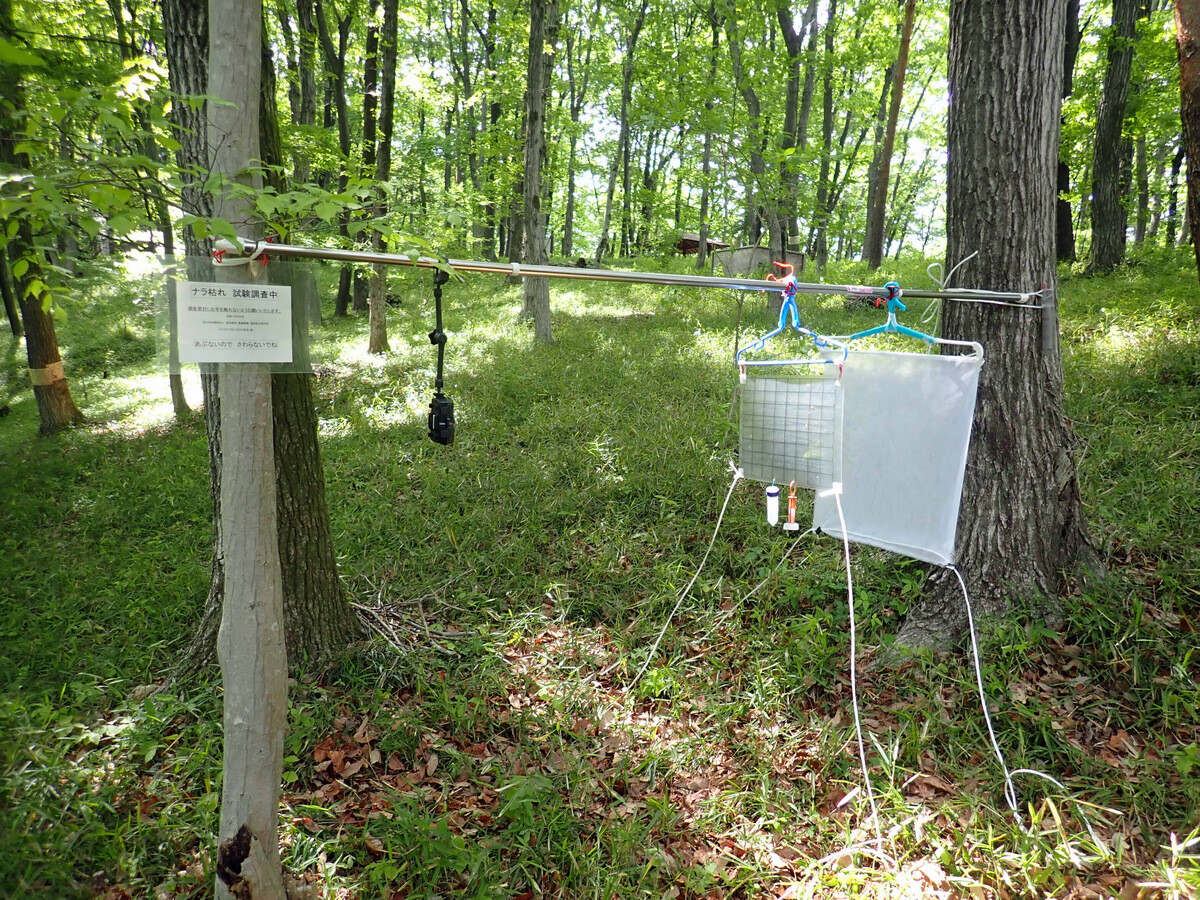5月~10月:トラップによる流れナラ枯れ予防作業。併行して下刈り、林床管理