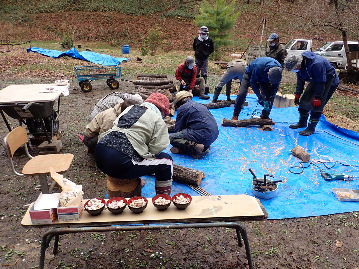 3月:キノコの駒打ち体験(岩殿満喫クラブと共催)