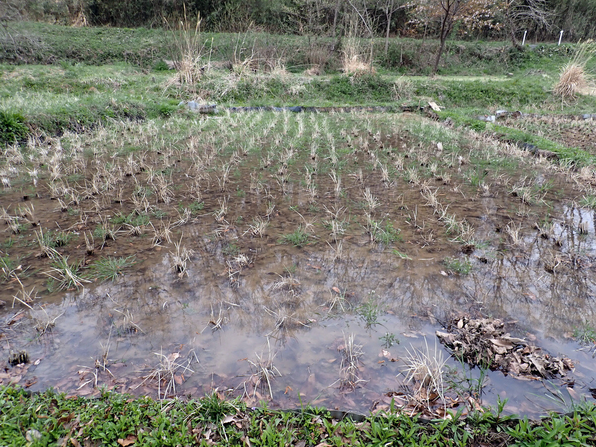 ②岩殿A・B地区の田んぼ今年は休耕。B地区の田んぼは通年湛水して湿地ビオトープとする。