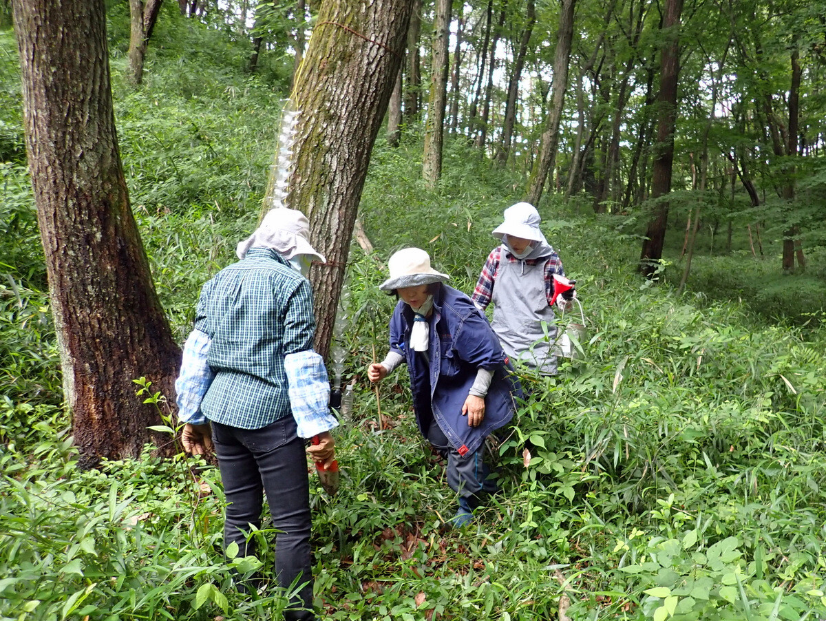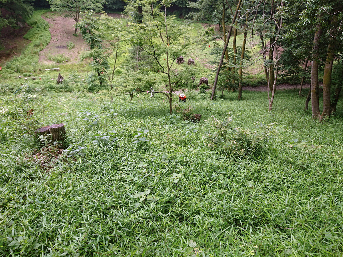 ①雑木林では定期的な下草刈り等管理の徹底
