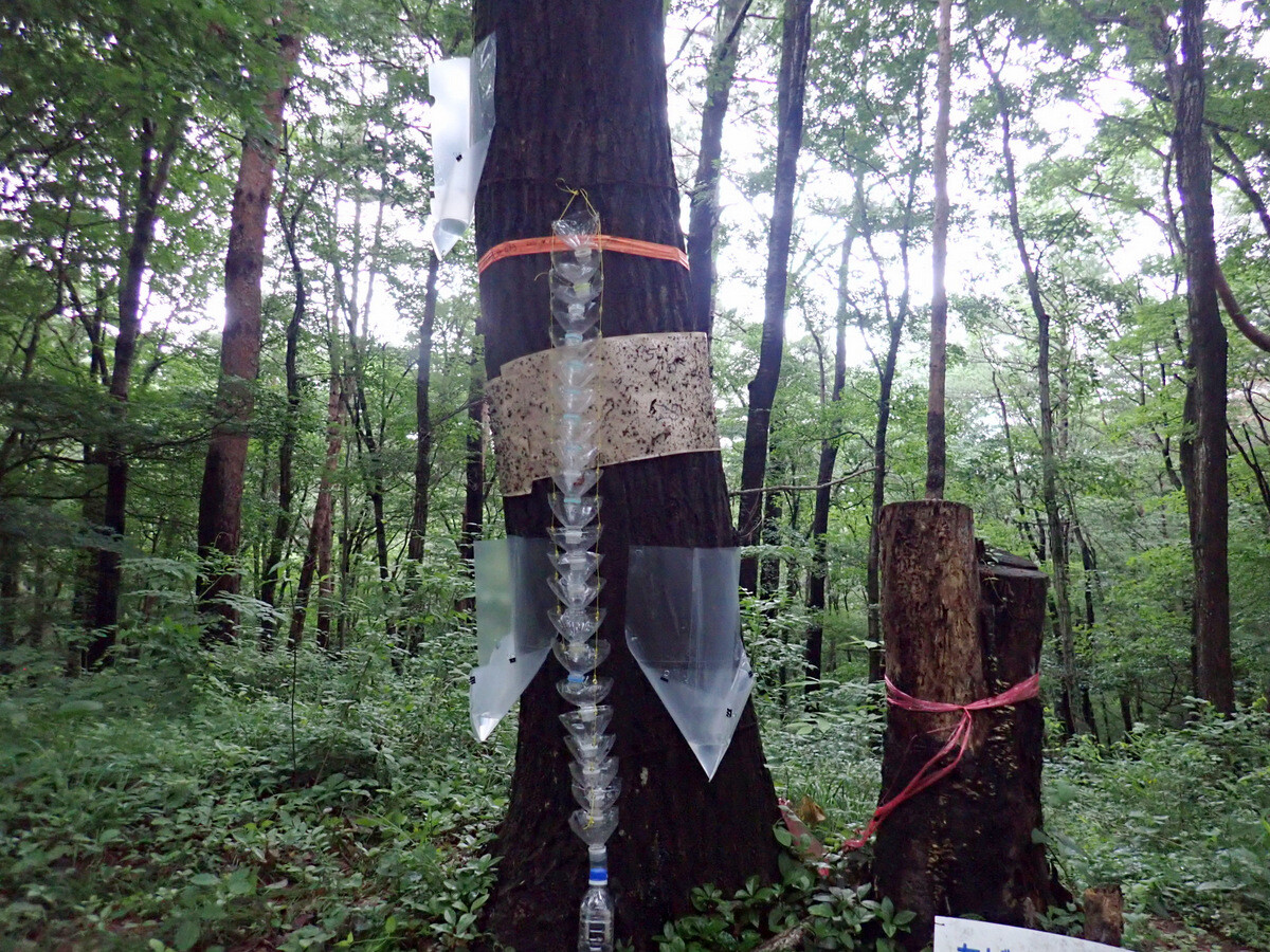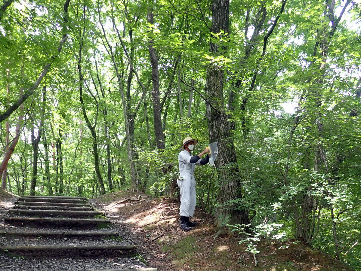 ここのトラップではカシノナガキクイムシの初見が6月18日。新たに22基、トラップを増設したそうです(「丘陵みどりの会6月3週活動状況」から)。立派に育ったコナラが多数あり、東側は田んぼに接するきれいな緑地です。