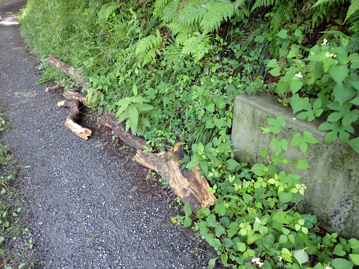 牙があったのでイノシシだと言って写真を見せていたとおっしゃっていましたが、姿や体色は6月8日の記事に載せているニホンカモシカと似ています。ニホンカモシカには生え替わらない角はあっても牙はないので、「牙があった」は気になります。