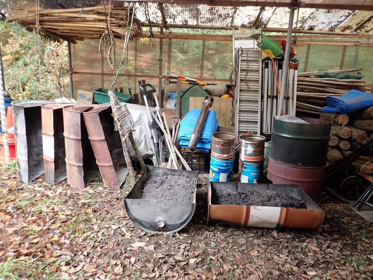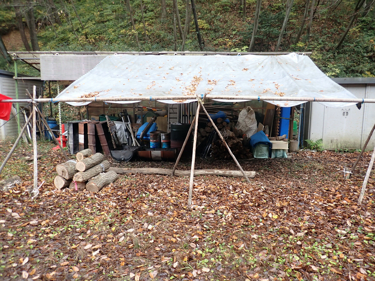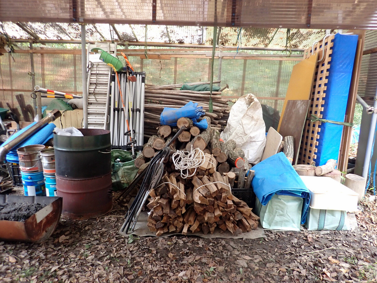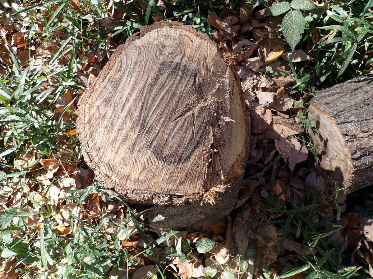 伐採木を~30㎝に玉切りし、乾燥させて幹内のカシナガを殺虫。