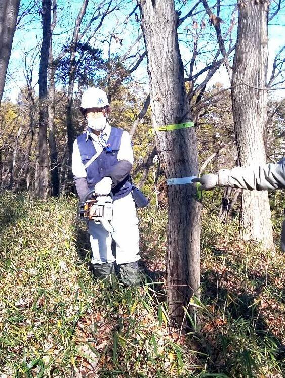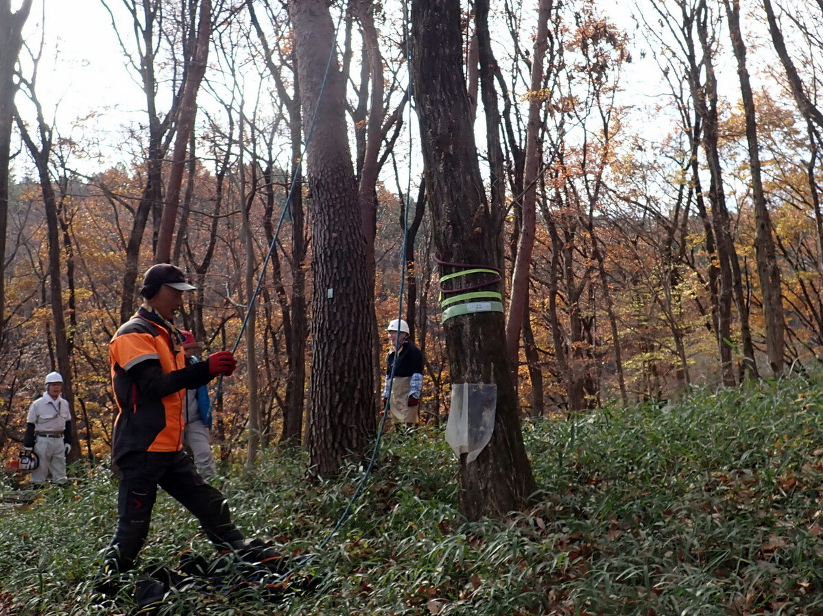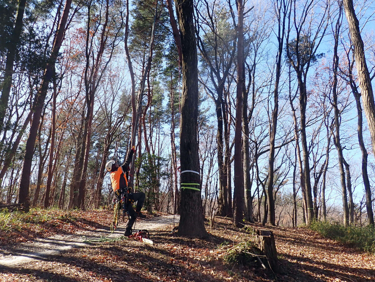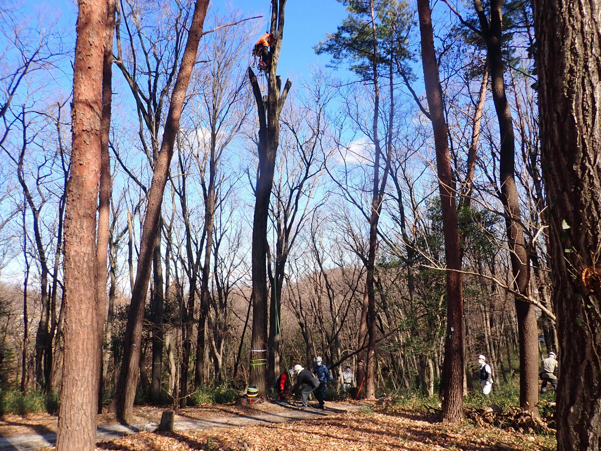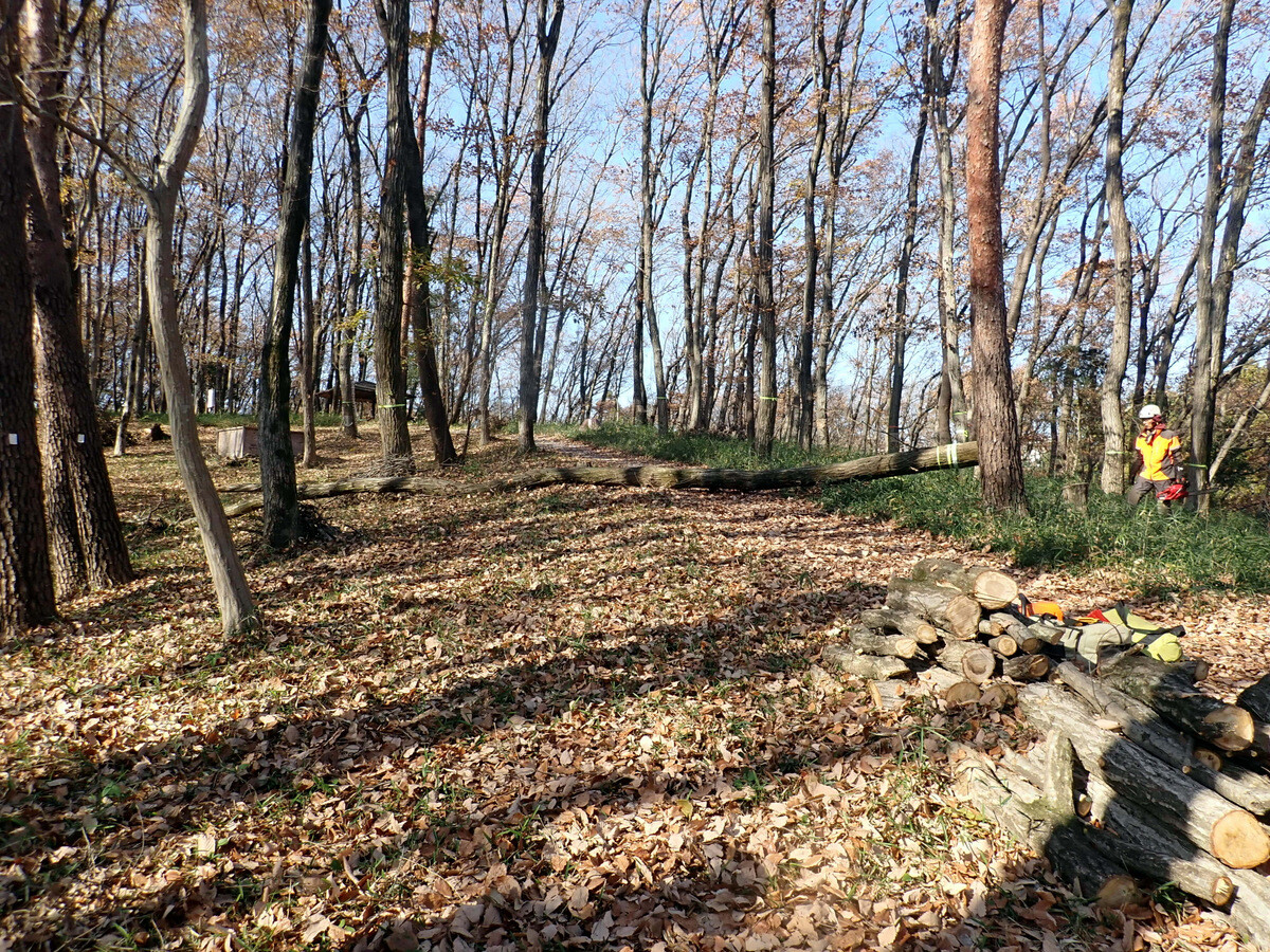 2022年度ナラ枯れ枯死伐採・剪定木のうち、尾根の道沿いの2本を伐採しました。