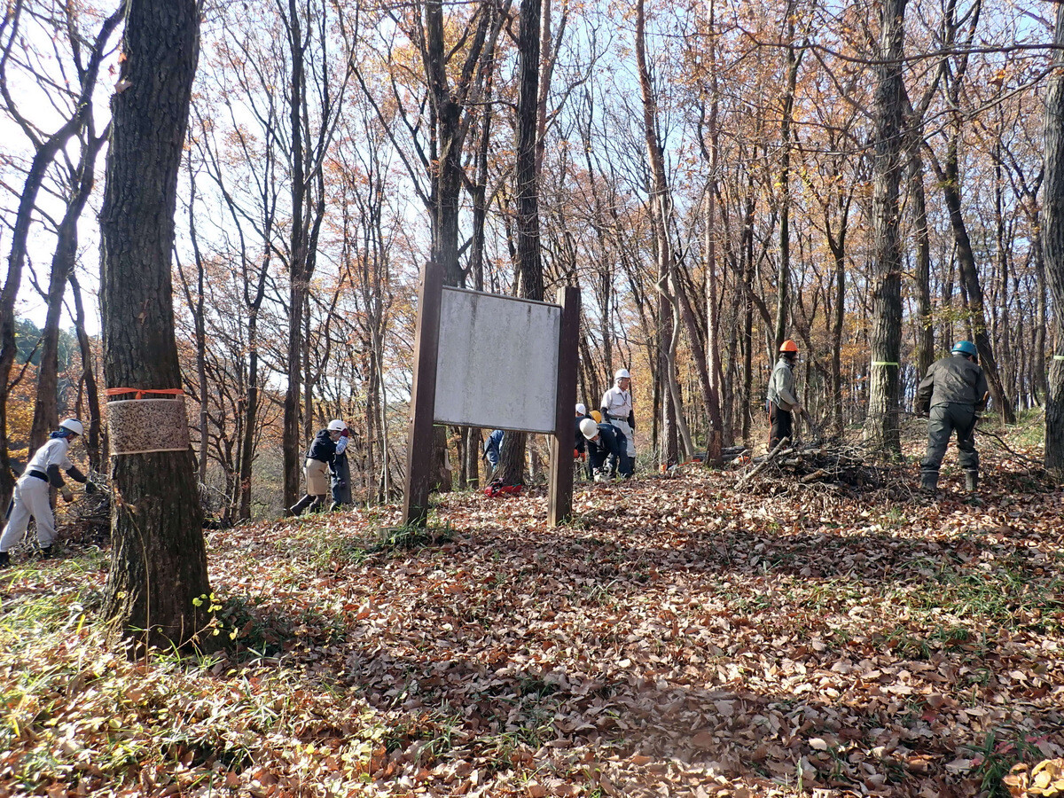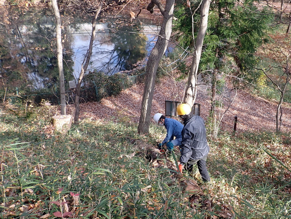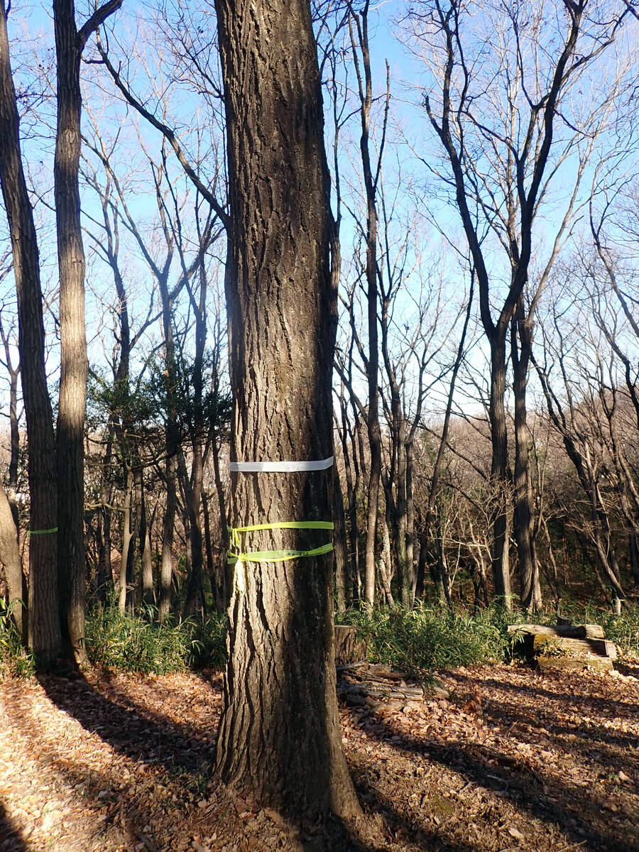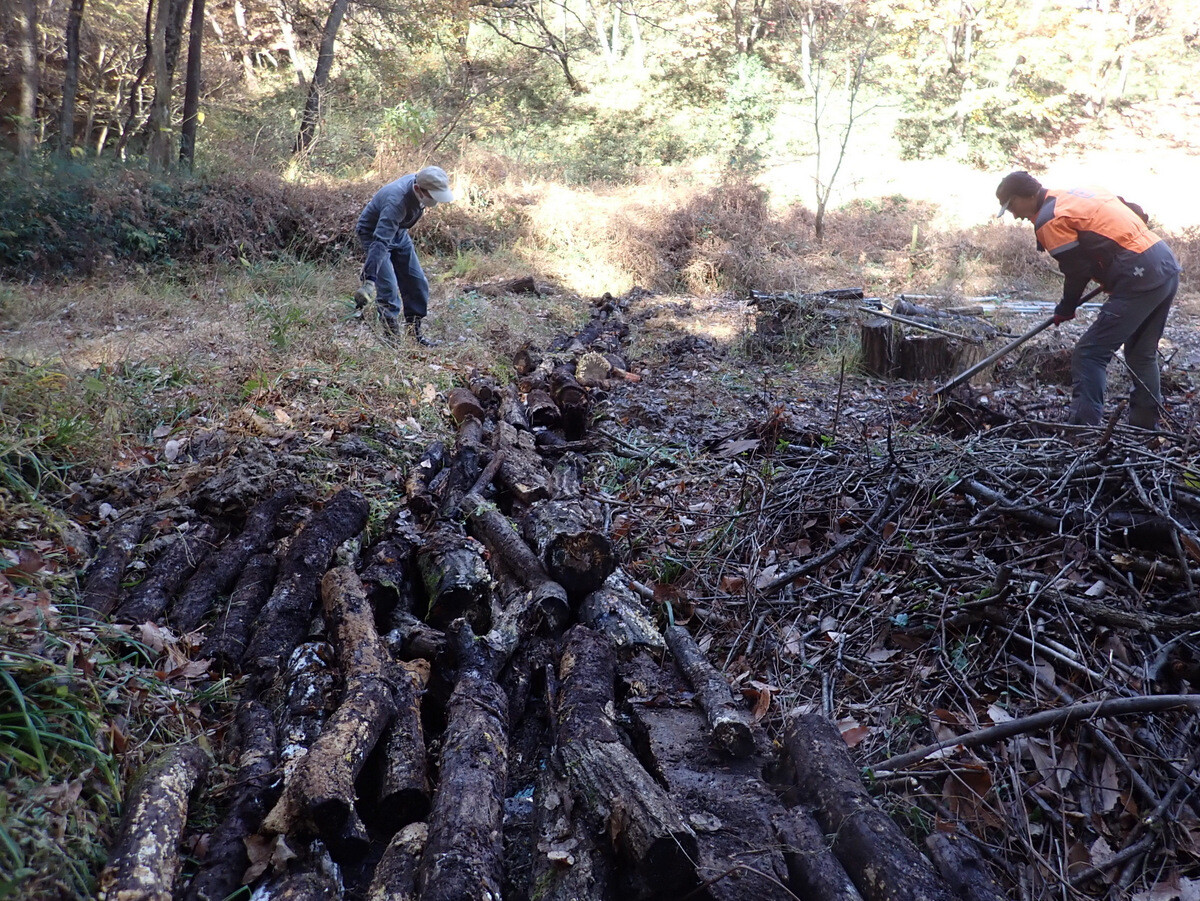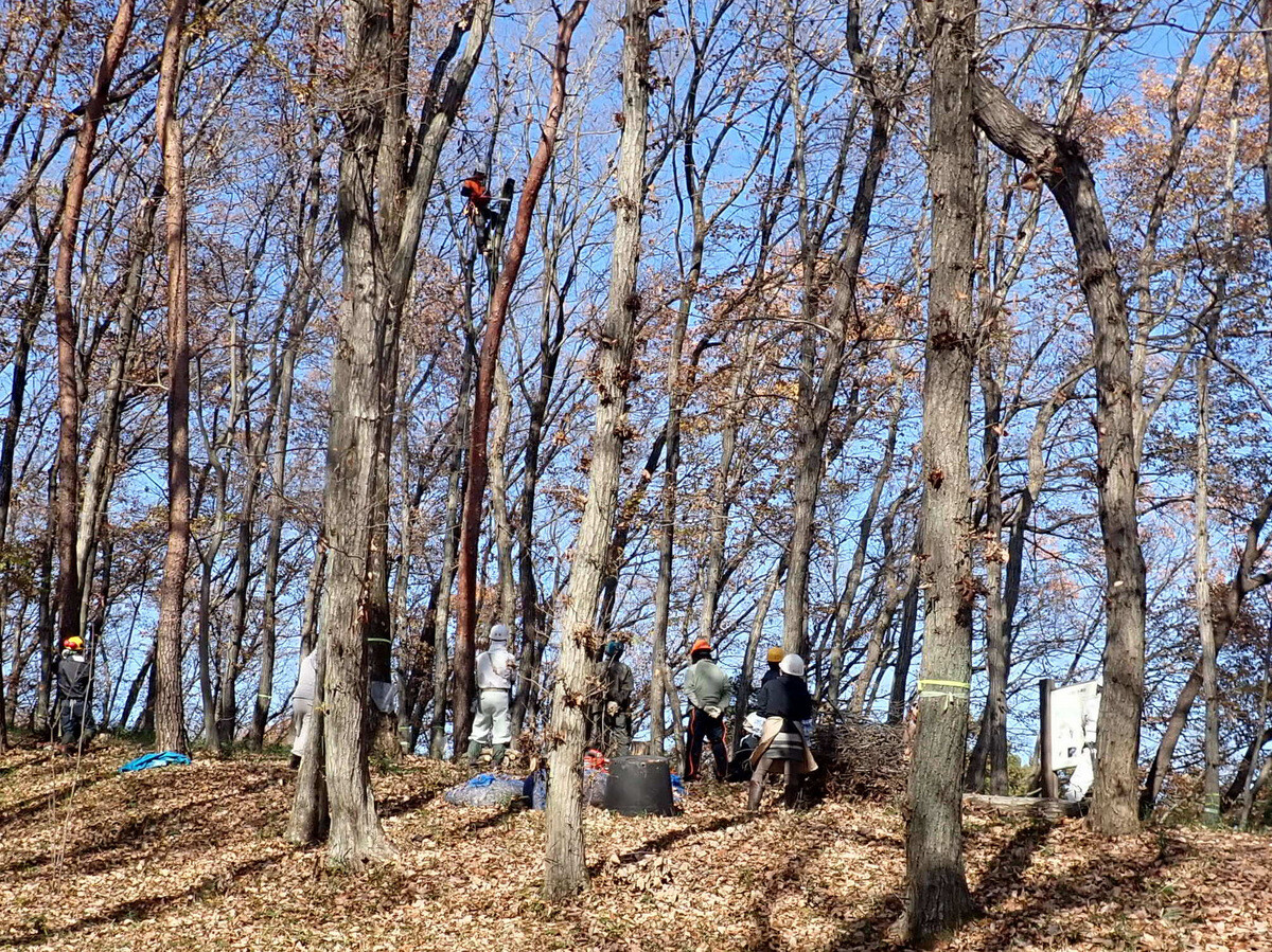 2022年度ナラ枯れ枯死伐採・剪定木のうち、尾根の道沿いの2本を伐採しました。
