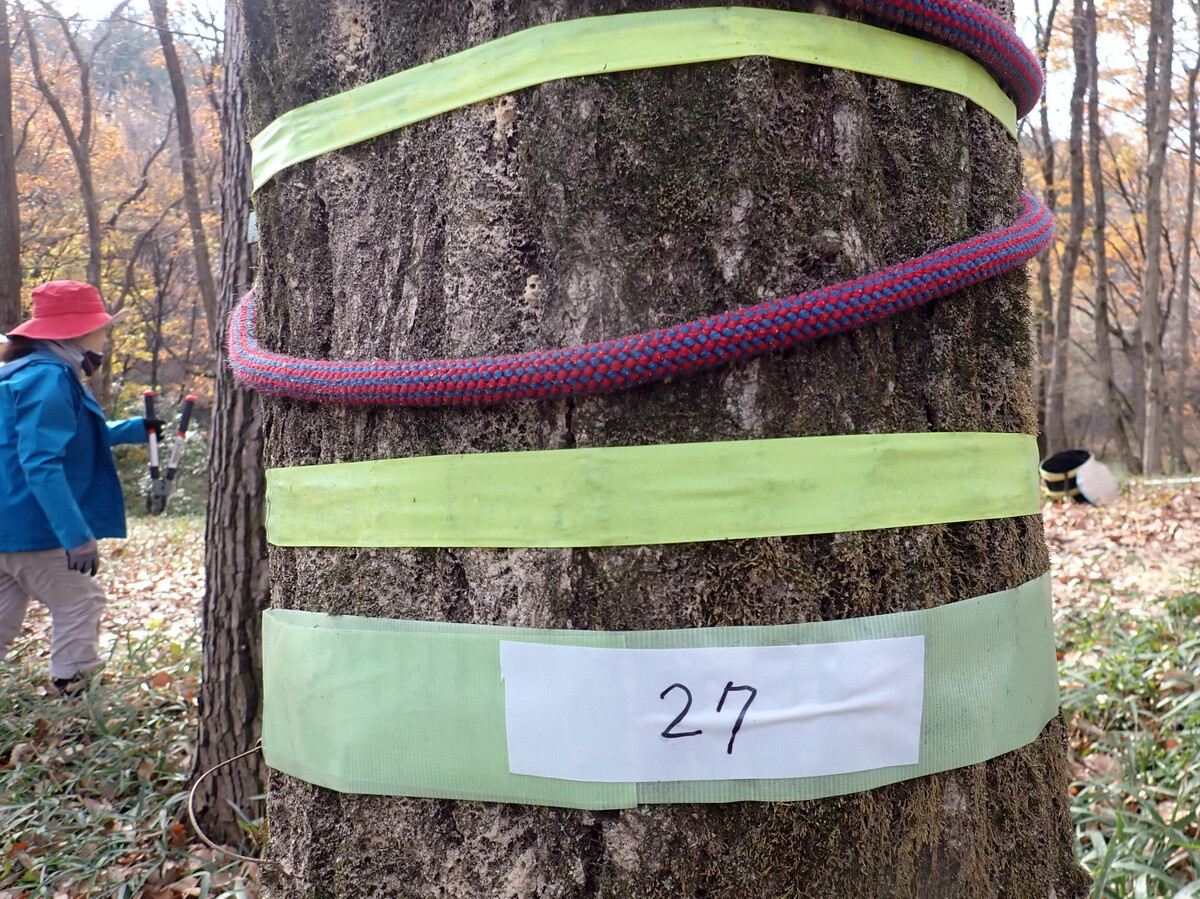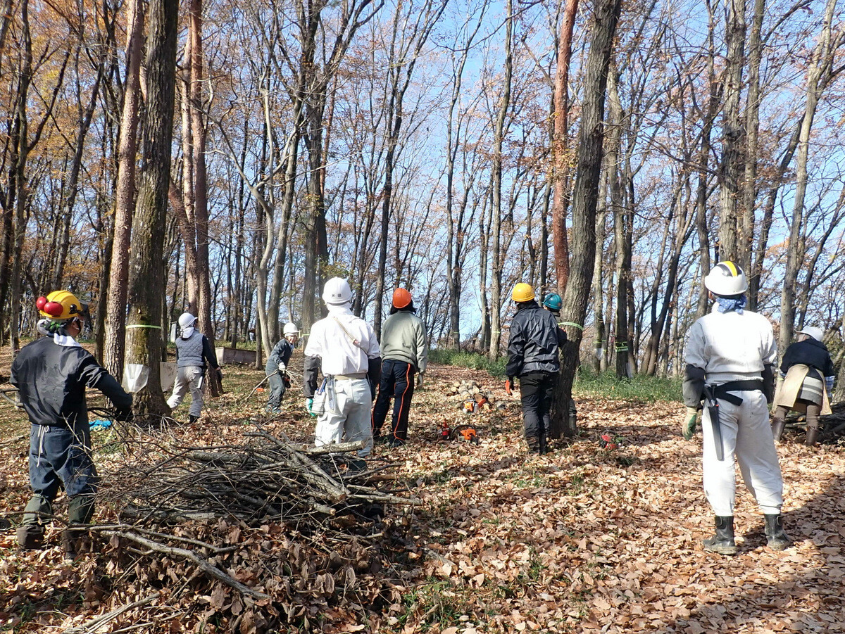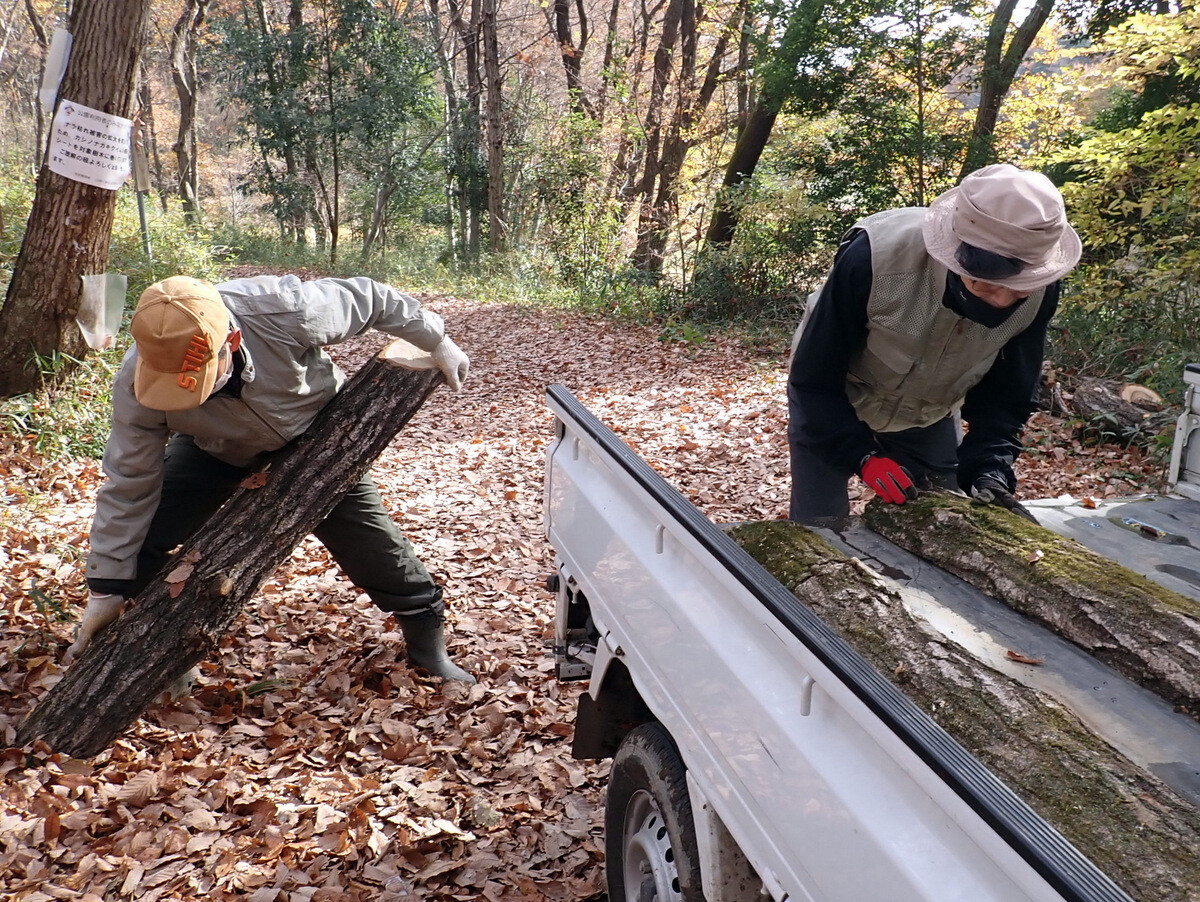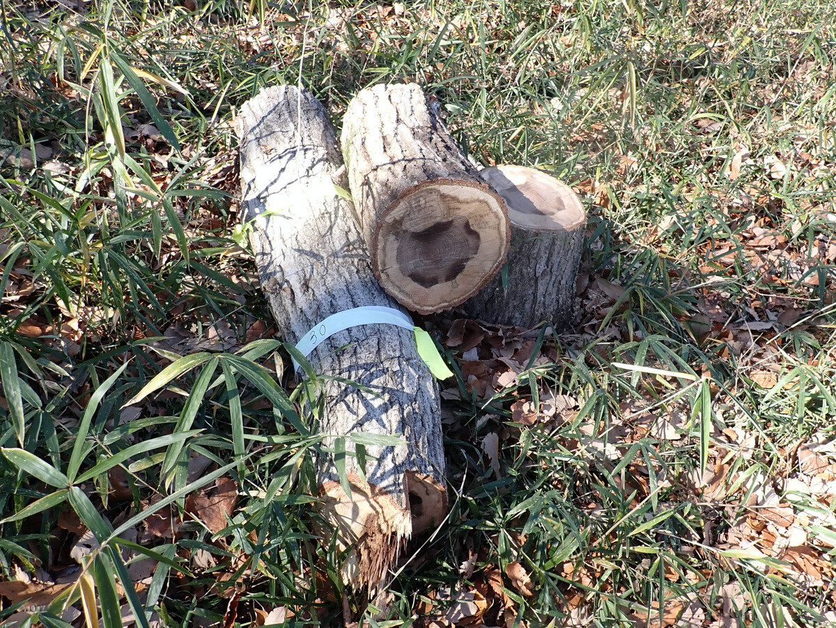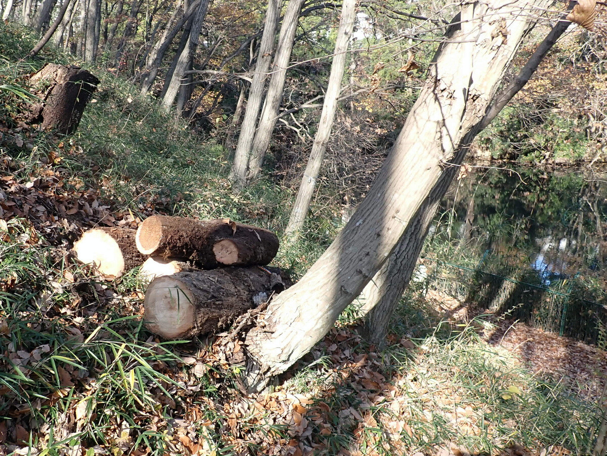 2022年度ナラ枯れ枯死伐採・剪定木のうち、尾根の道沿いの2本を伐採しました。