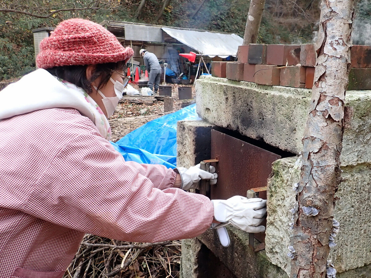 今日は細川さんが育てた児沢産の紅はるか40本を焼き芋にしました。