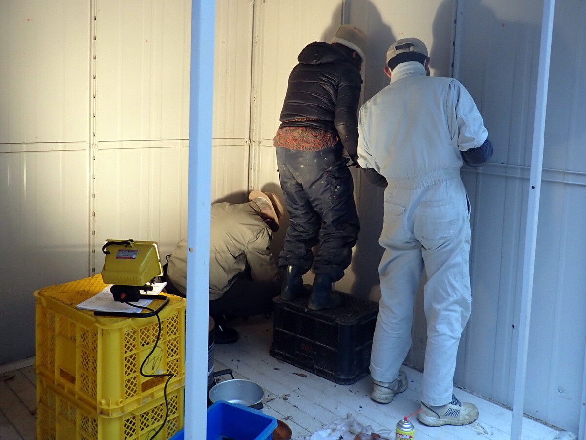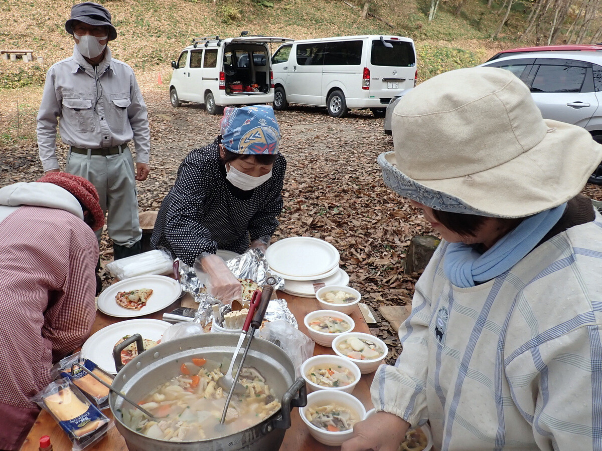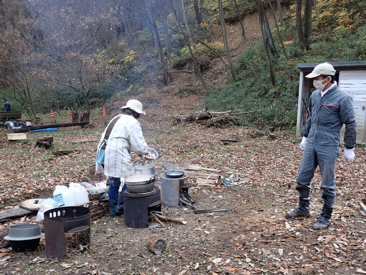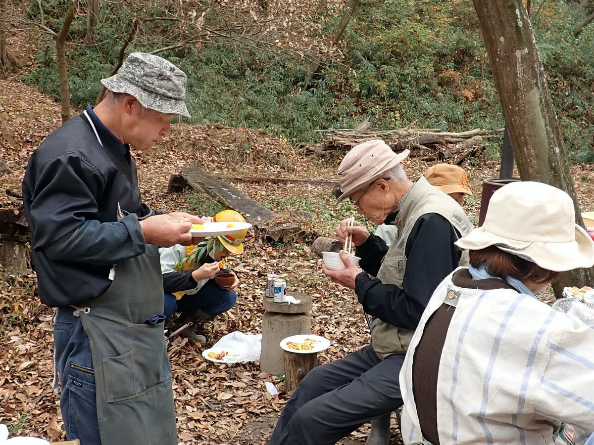 11月19日のイベントの慰労も兼ねて大谷石のピザ釜でピザを焼いて岩殿C地区で軽食会をしました。ピザやサイドメニューは木庭さん、新倉さん、細川さん、丸山さん、ピザ釜とカマドの火の番は江原さん、片桐さん、金子さんが担当しました。