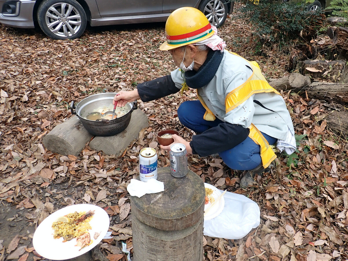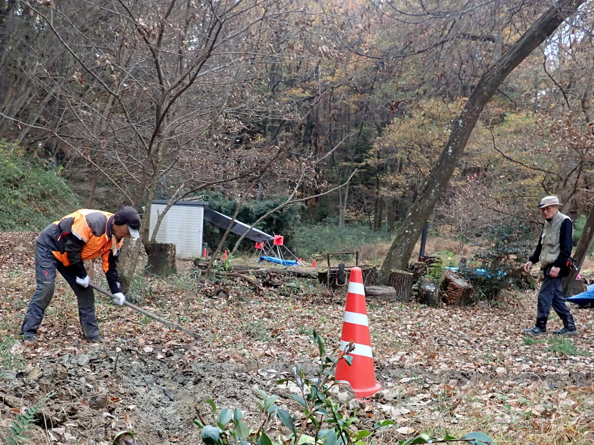 市民の森保全クラブ、2022年最終活動日です。参加者は芦田さん、新井さん、片桐さん、金子さん、木谷さん、鳥取さん、新倉さん、細川さん、丸山さん、鷲巣さん、渡部さん、Hikizineと大東文化大学研究生の顧[顾・Gù]さんの13名でした。