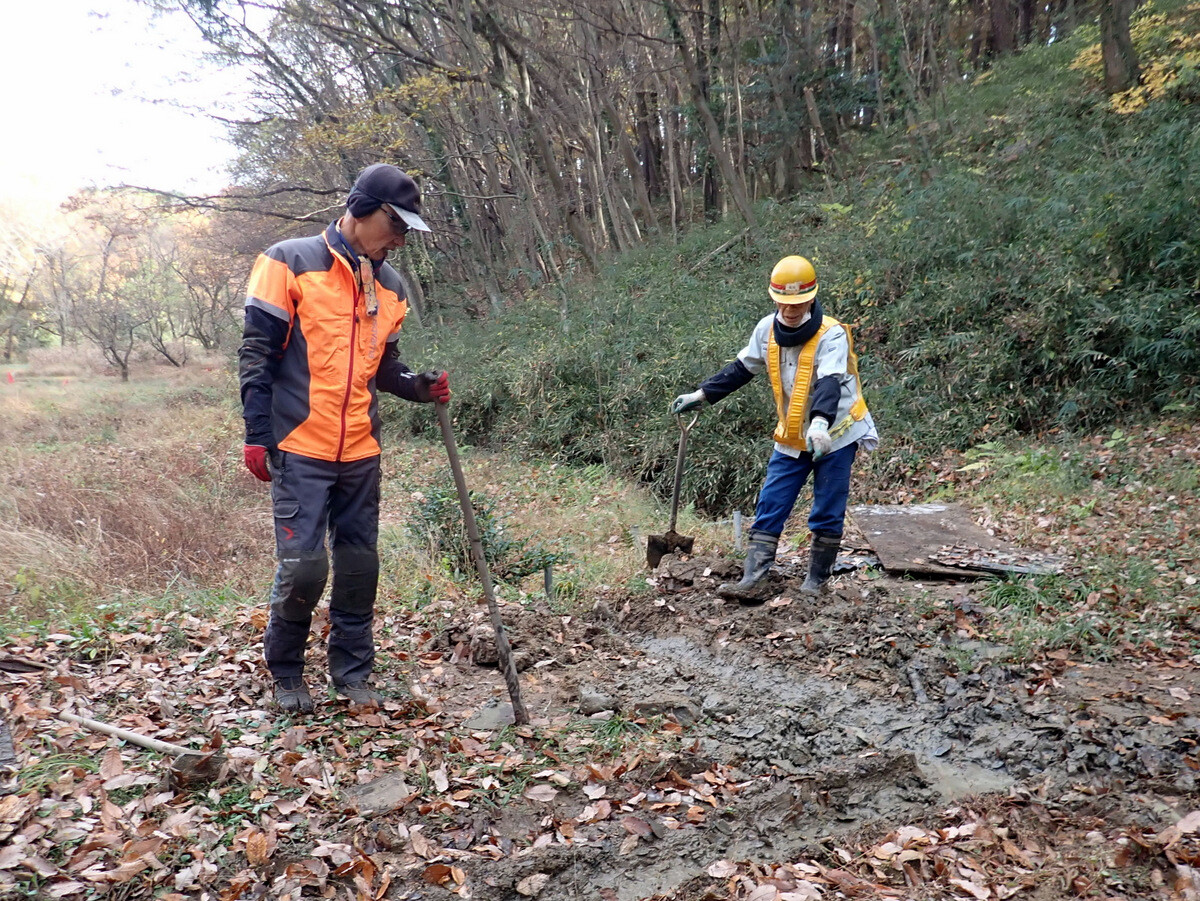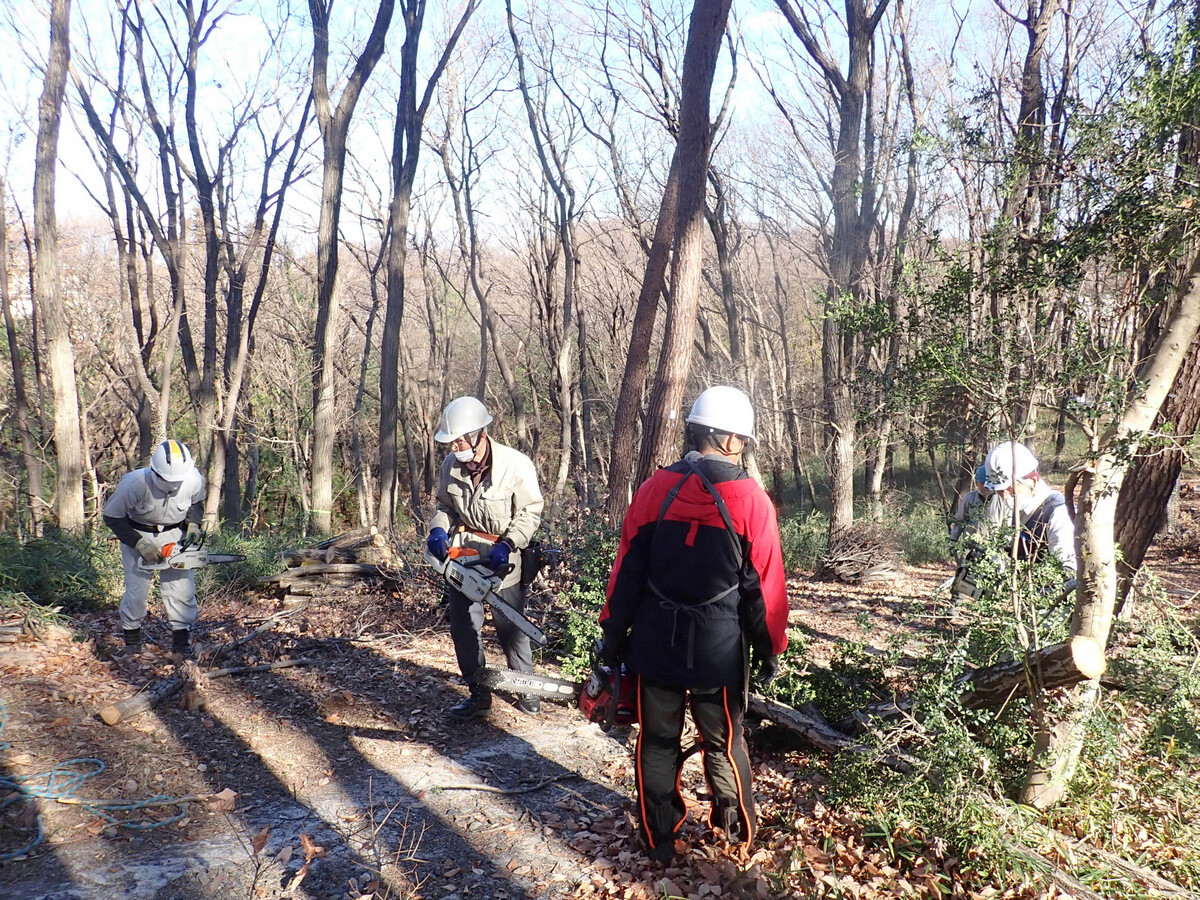 市民の森保全クラブ定例活動日。参加者は芦田さん、新井さん、江原さん、片桐さん、金子さん、鳥取さん、橋本さん、細川さん、丸山さん、渡部さん、Hikizineと小松さん、解散時に到着した鷲巣さんの13名でした。