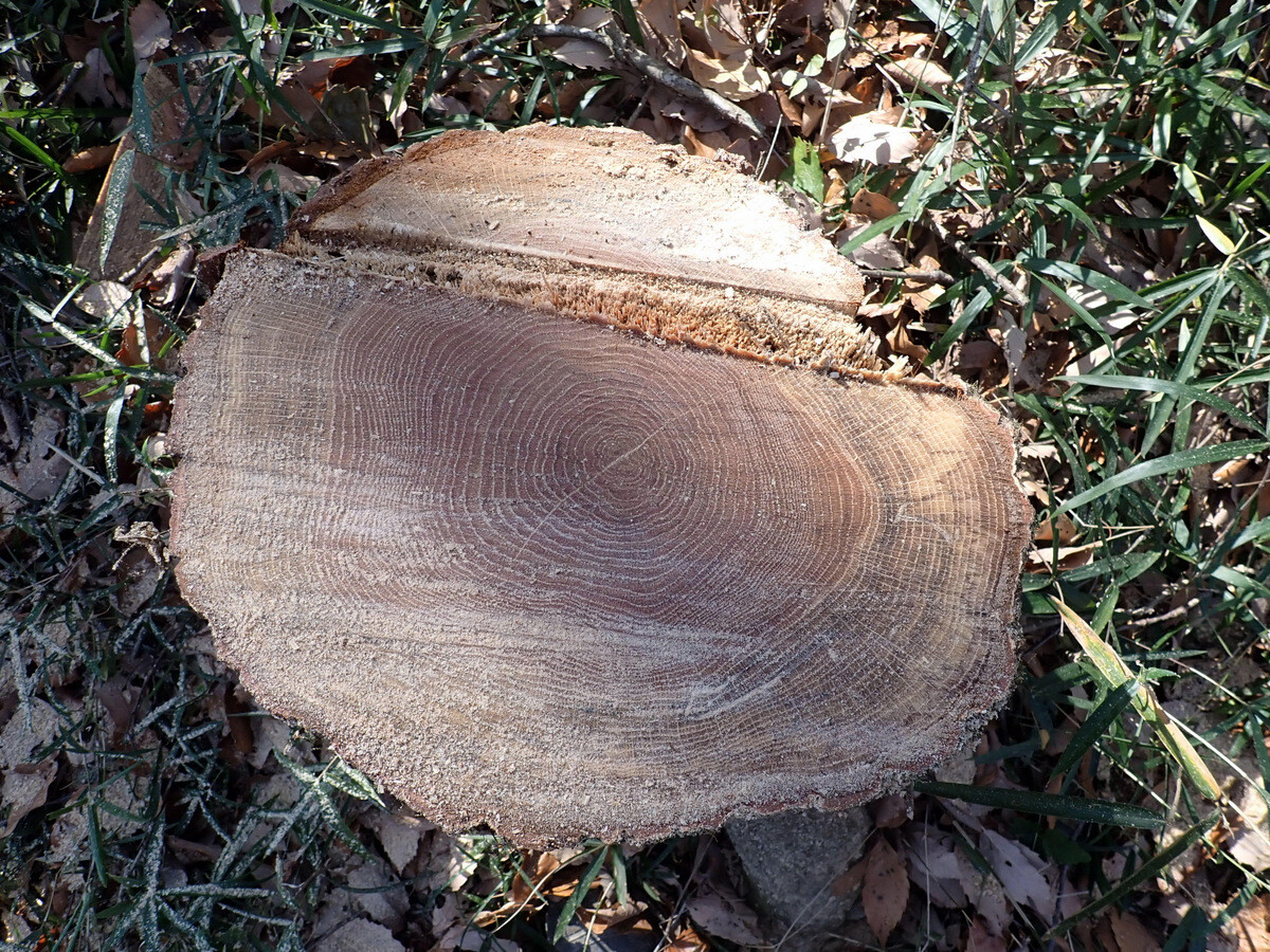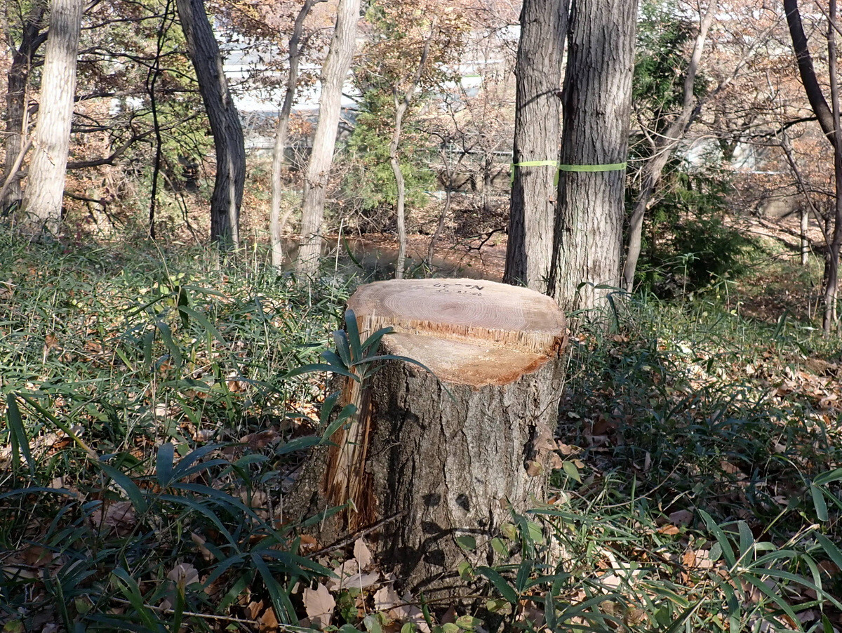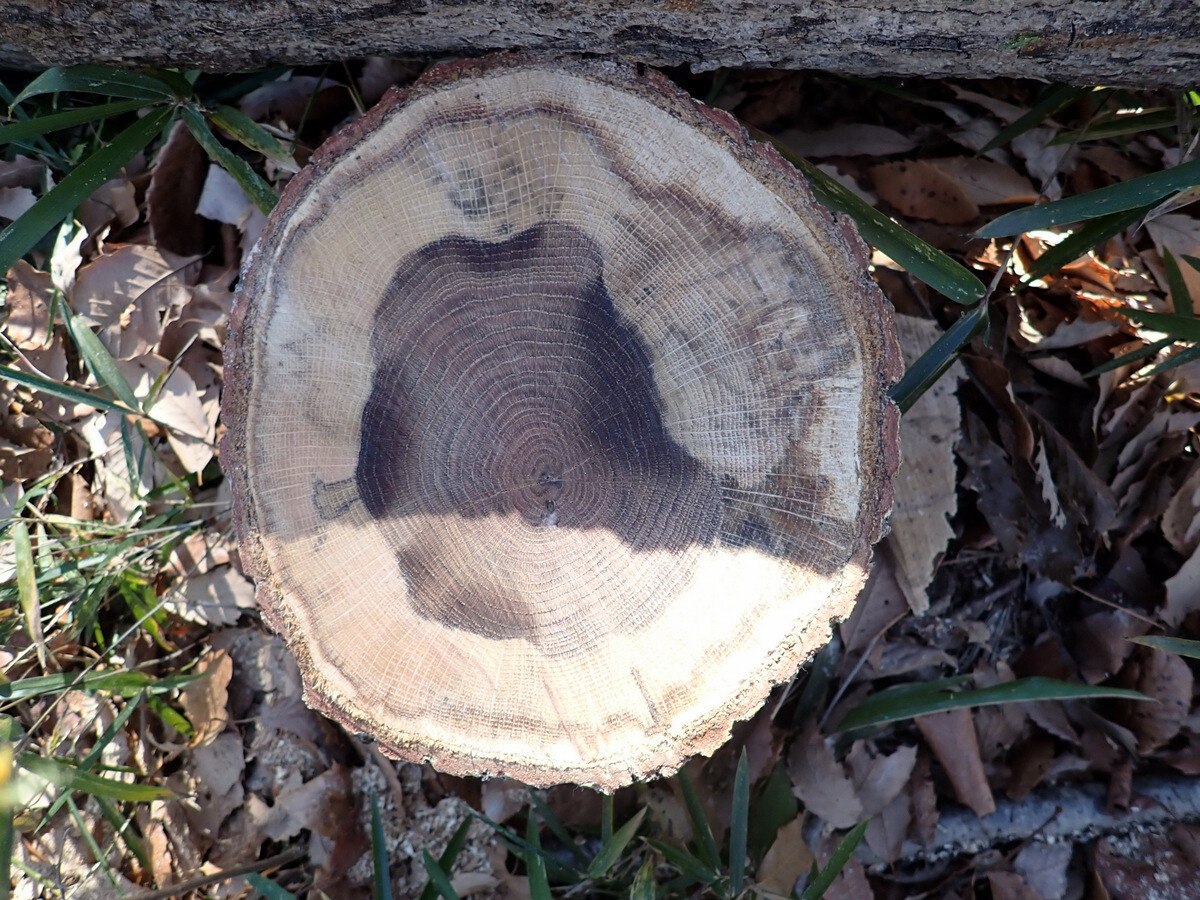 コナラ枯死木№27(目通り直径32.5㎝、伐採面直径35㎝、樹齢58)を伐採しました。