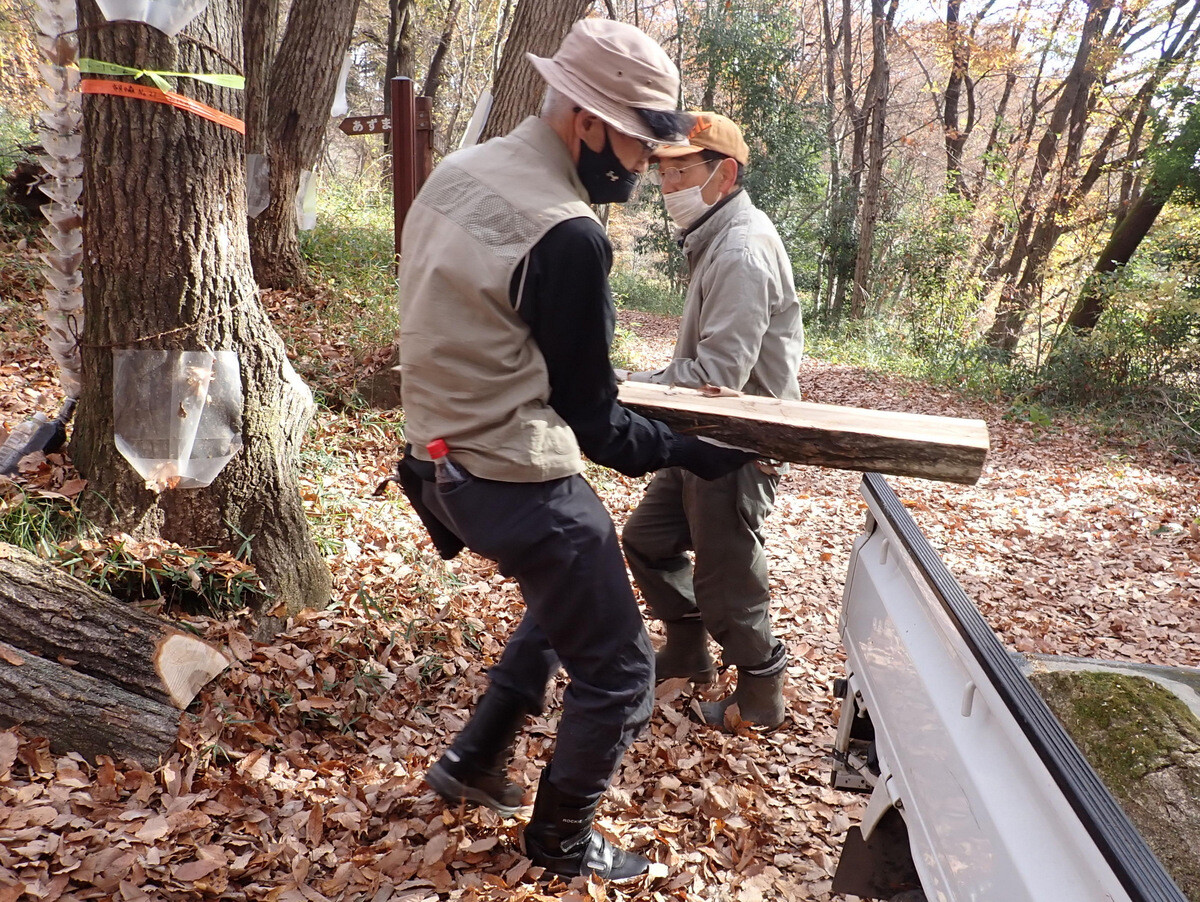 市民の森尾根の道入口の休憩スポットも補修しました。
