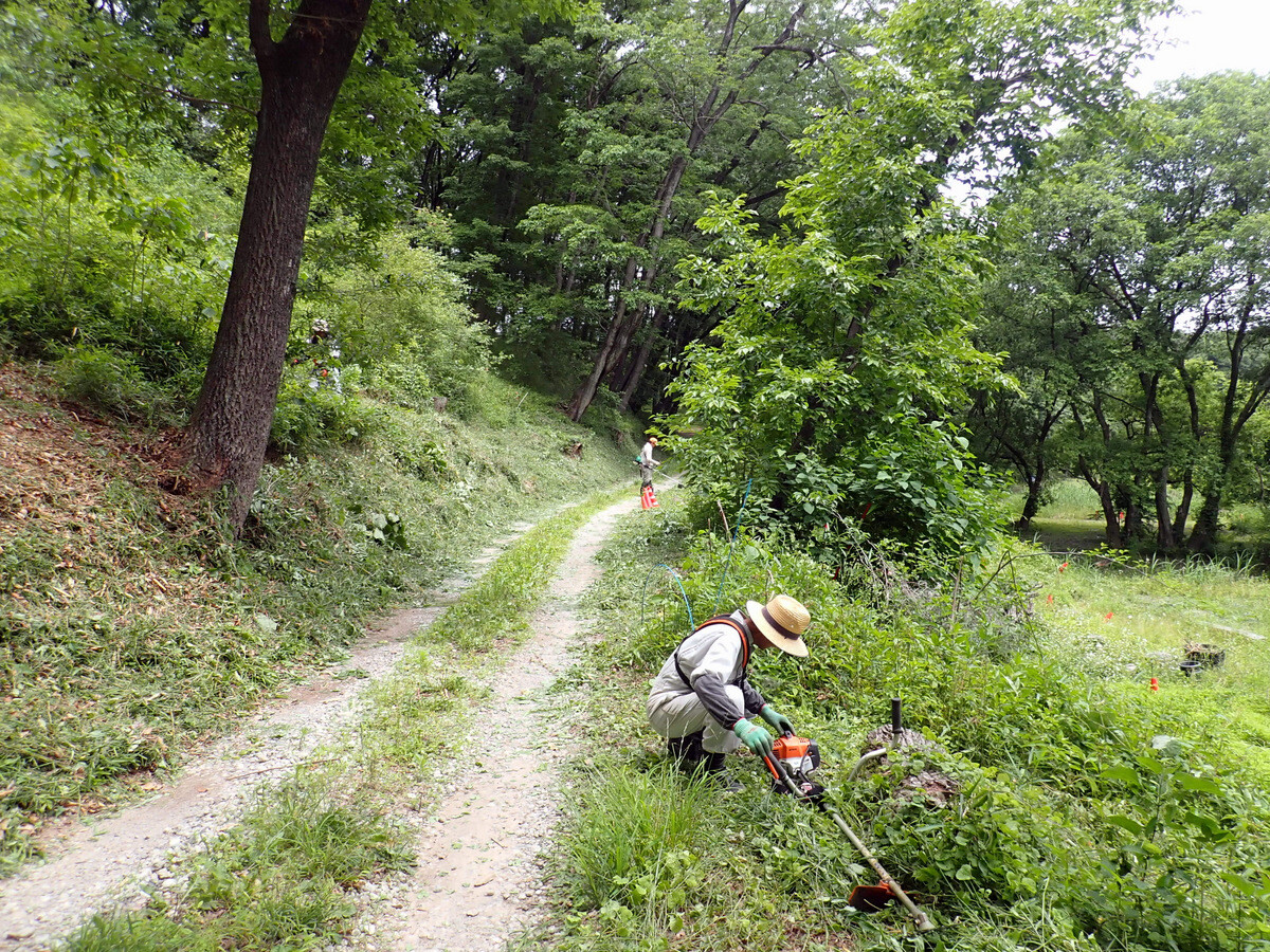 岩殿B地区の草刈り。金属刃とナイロンコードで刈りました。