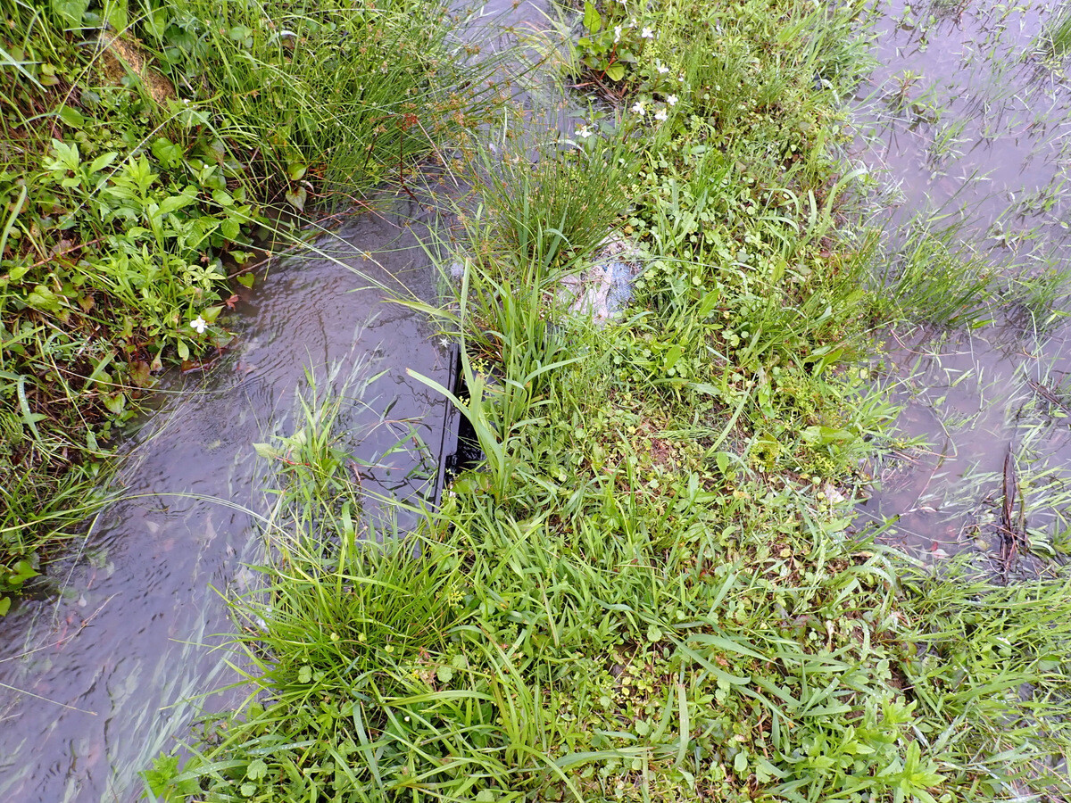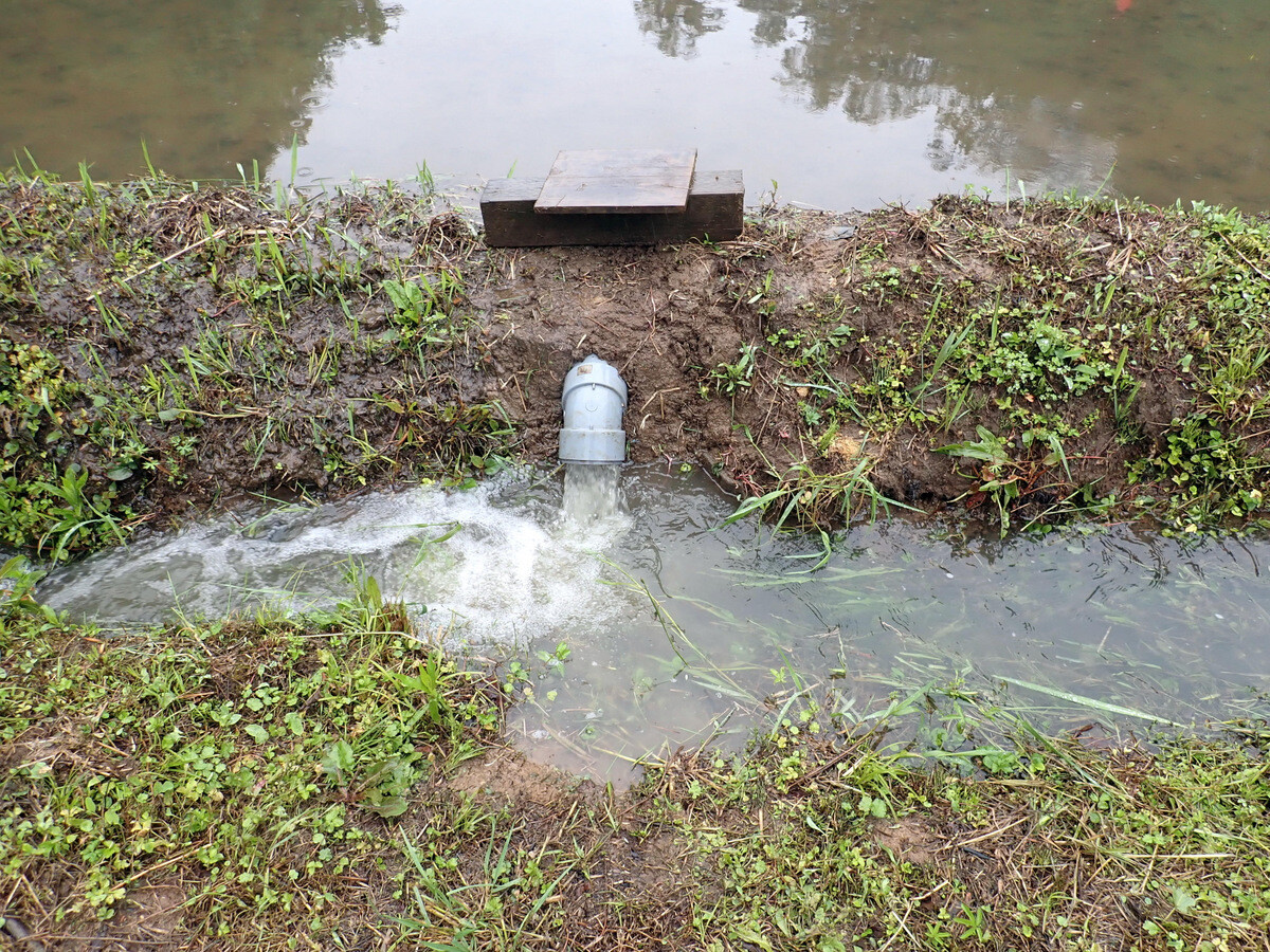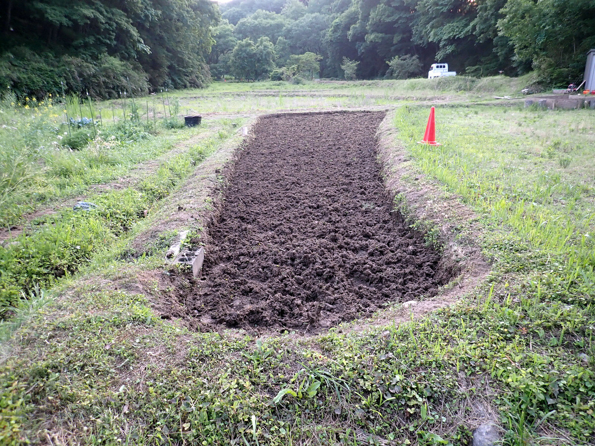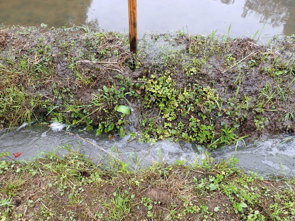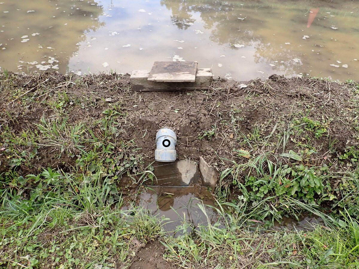 昨日、今日の2日間、雨が降った(鳩山アメダスの降水量8.0㎜)ので、畦塗りをするのには充分な深さで田んぼに水が溜まっていましたが、後日に実施することにして、今日は田んぼの改造をしました。田んぼの四隅を削り、受水口、排水口の付け替えをして田んぼの作付可能面積が2㎡ほど増えました。