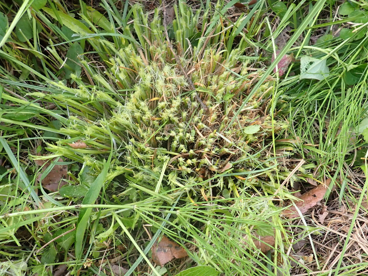 谷津田の初夏は柳絮が舞い、夏鳥やシュレーゲルアオガエルの鳴き声に包まれています。スゲ類の花、イネ科のアシボソの幼葉がマット状に拡がる畦地、草木に訪花する昆虫、あちこちに生きものたちの躍動が垣間見られました。この日、梅雨、盛夏への序章という季節感を満喫しました。