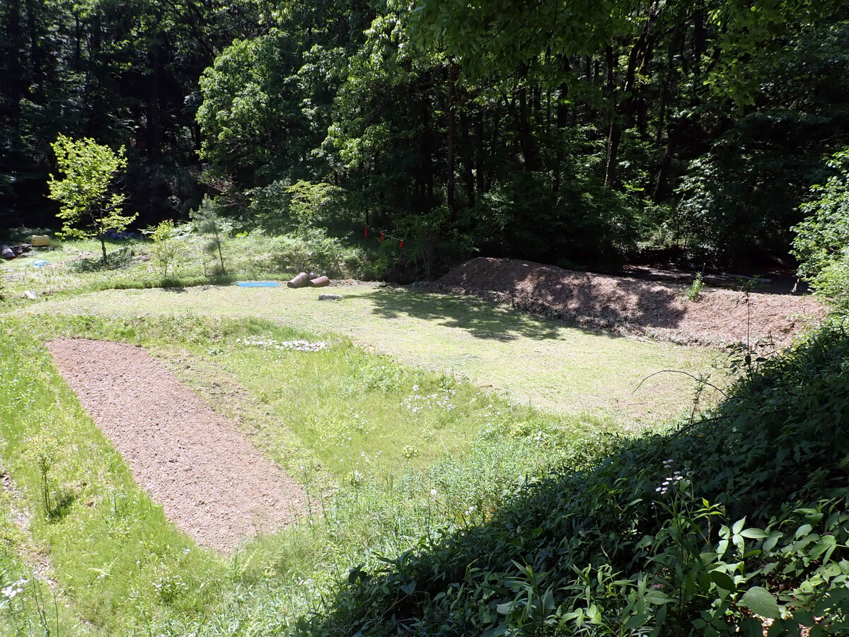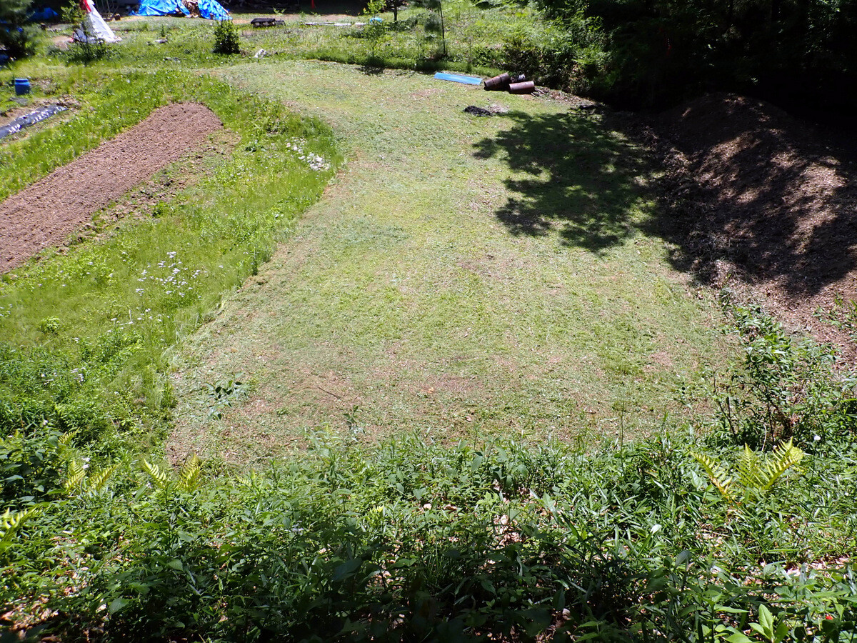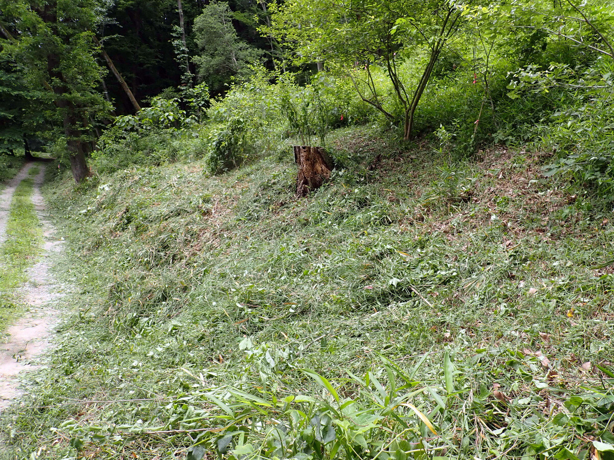 青木ノ入の果樹園の道路際とボッシュ林に向かう農道を除草しました。前回は4月10日です。