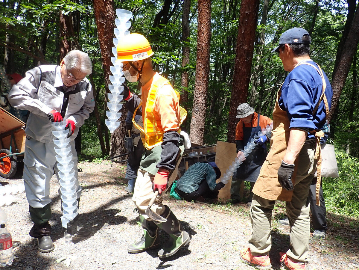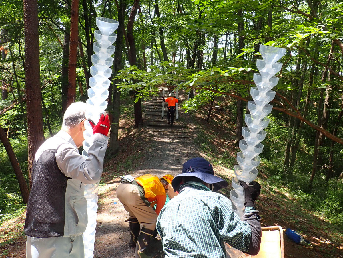 2組に分かれてカシナガトラップの点検と作業道沿いの裾刈りをしました。