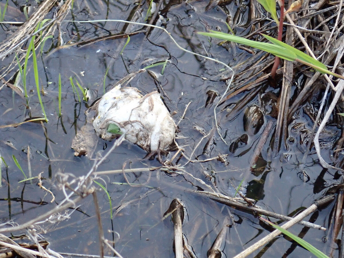 初夏の谷津田はマルバヤナギの柳絮[りゅうじょ]が小雪のように舞い、晴れ間がのぞくとハルゼミの「ギーギー」「ムゼームゼー」の鳴き声が市民の森の松林から聞こえてきます。沼地からは「コロッコロッ」と巻き舌ふうに奏でるシュレーゲルアオガエルの鳴き声が谷津田に響きます。春告げ鳥のウグイスも夏ともなると洗練されたさえずりを奏でます。目に青葉の季節には「トッキョトキャキョク」と鳴くホトトギス。こんな生きものたちのBGMを聴きながら、打ち合わせ・調査・観察をしました。そんな梅雨間近の谷津田の風景を以下、画像レポいたします。