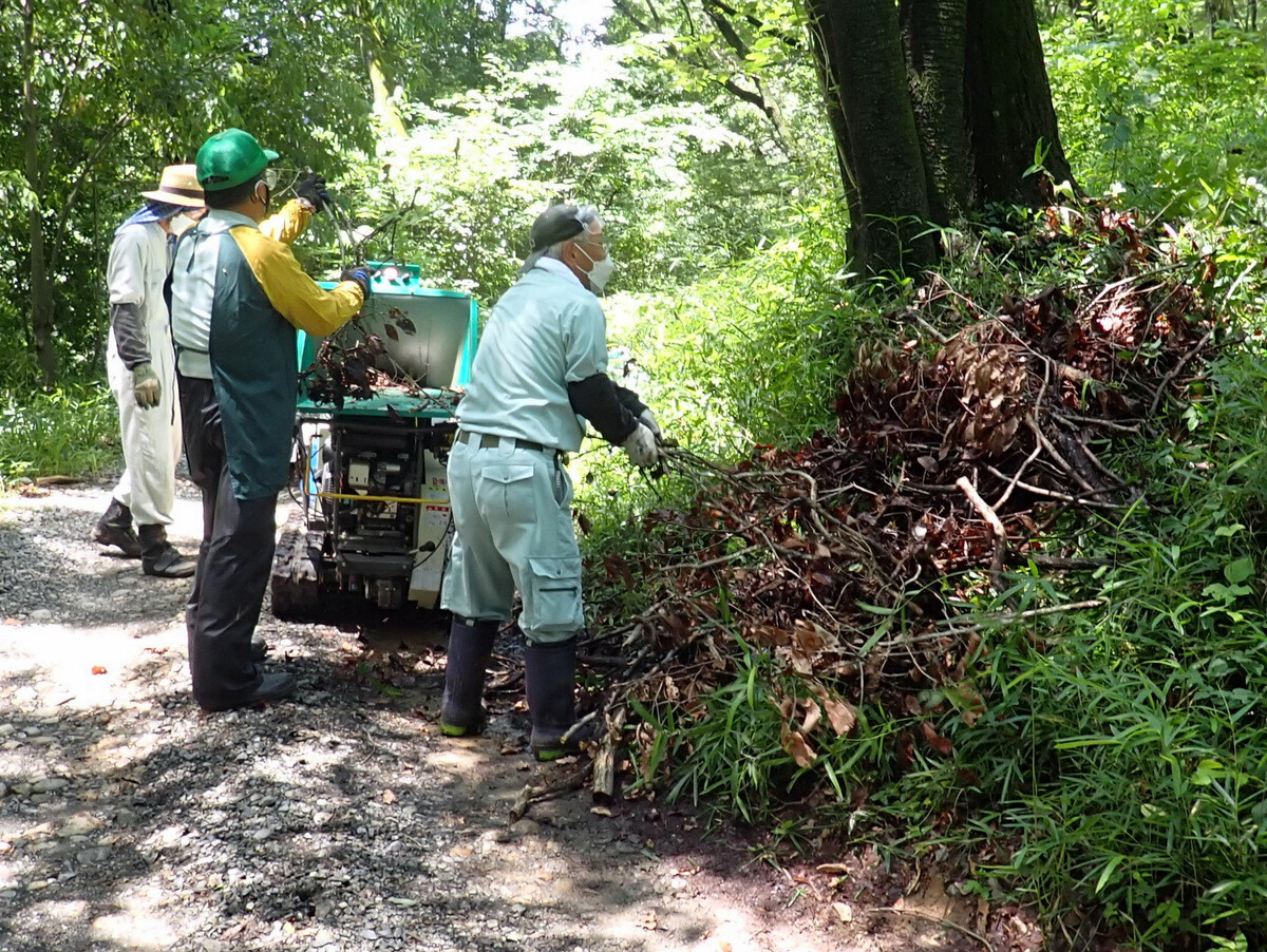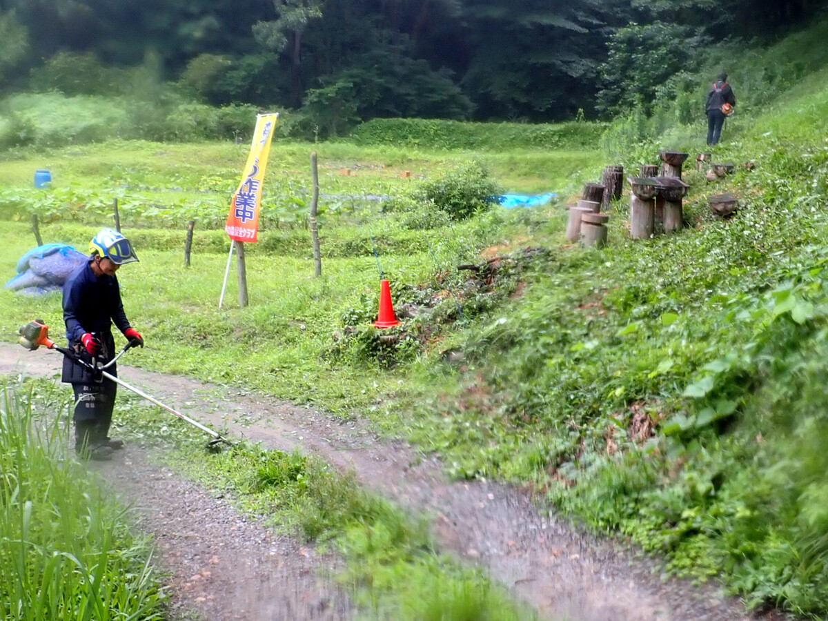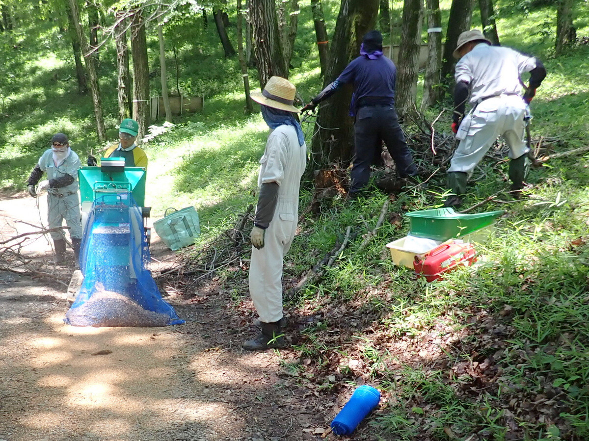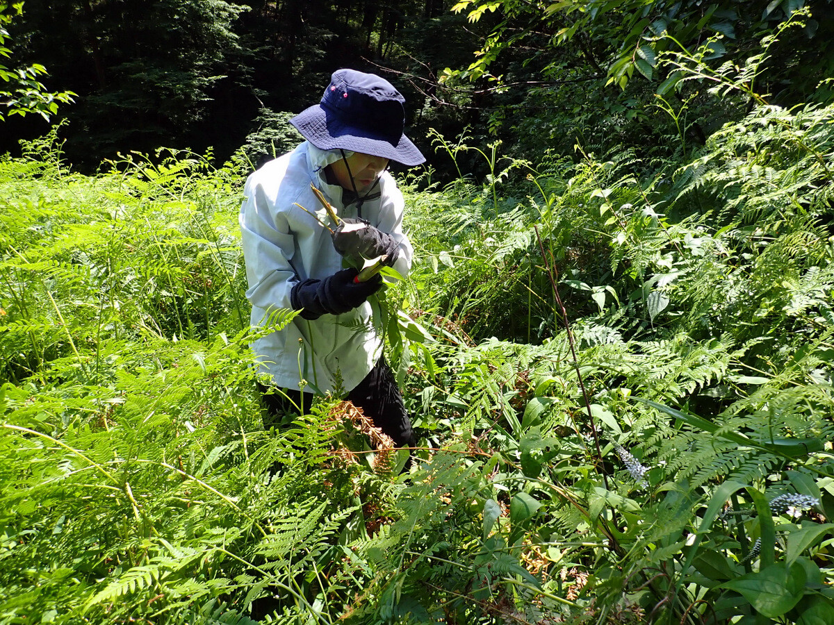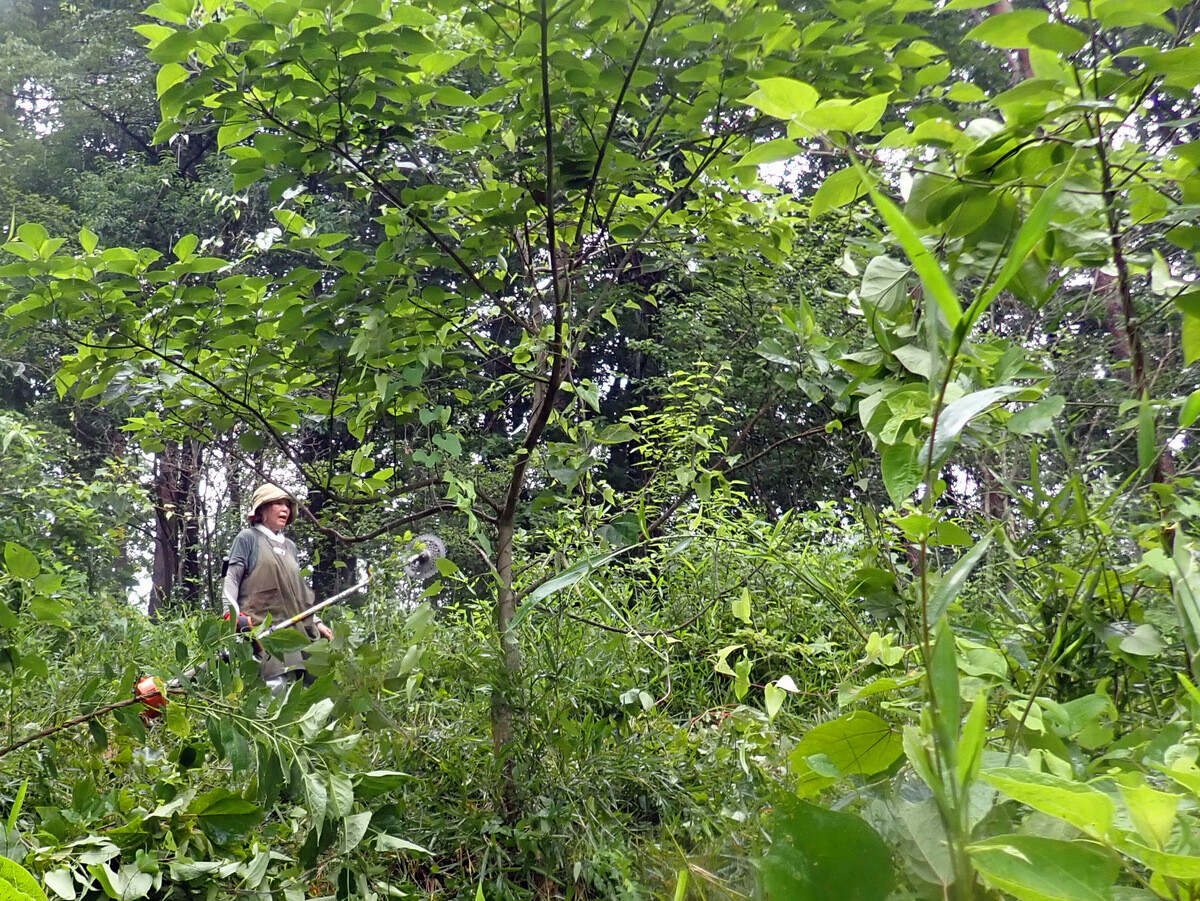 この作業は、機械使用(刈払機)と手作業(鎌・鋸・鋏)の併用が望ましい