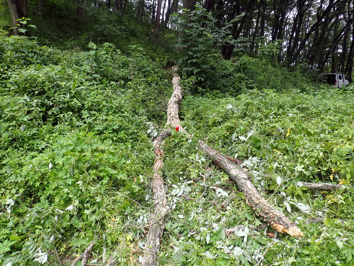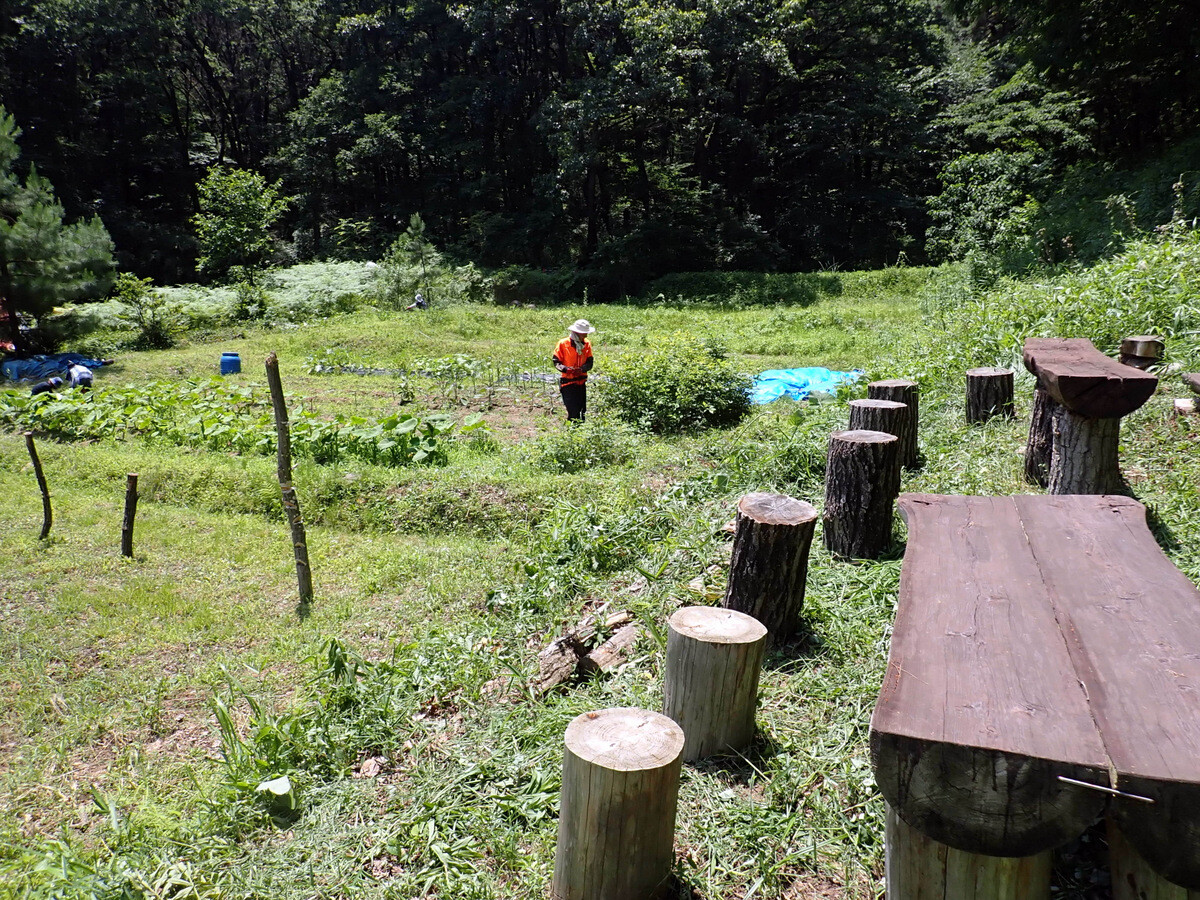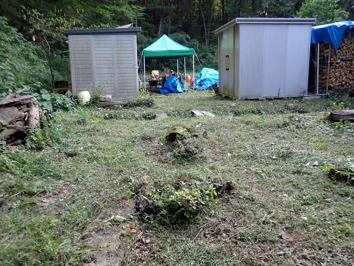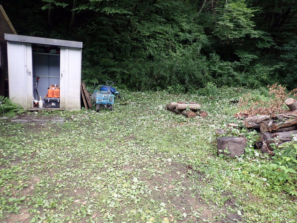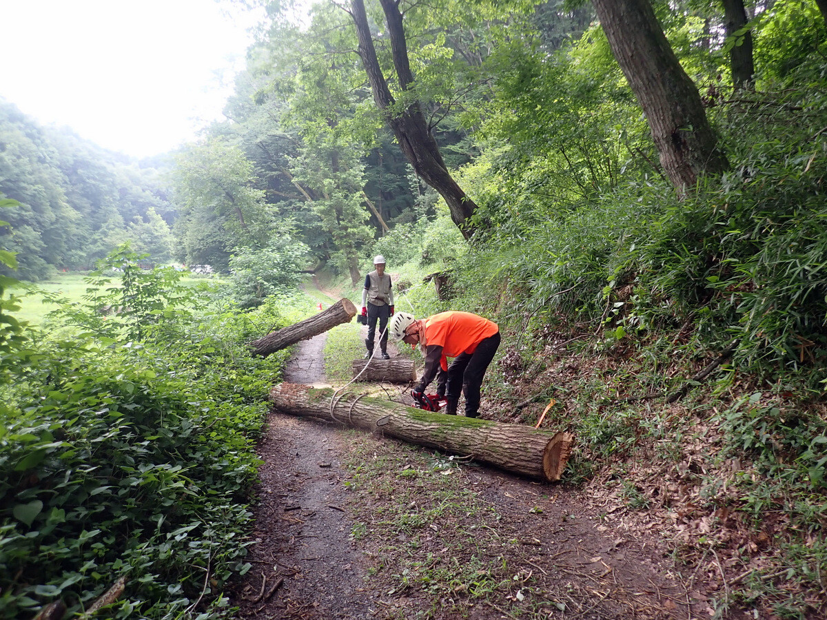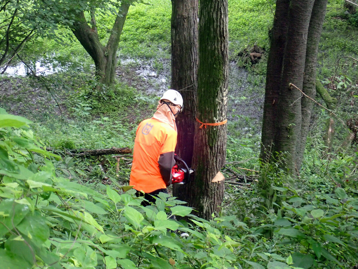 この作業は、機械使用(刈払機)と手作業(鎌・鋸・鋏)の併用が望ましい