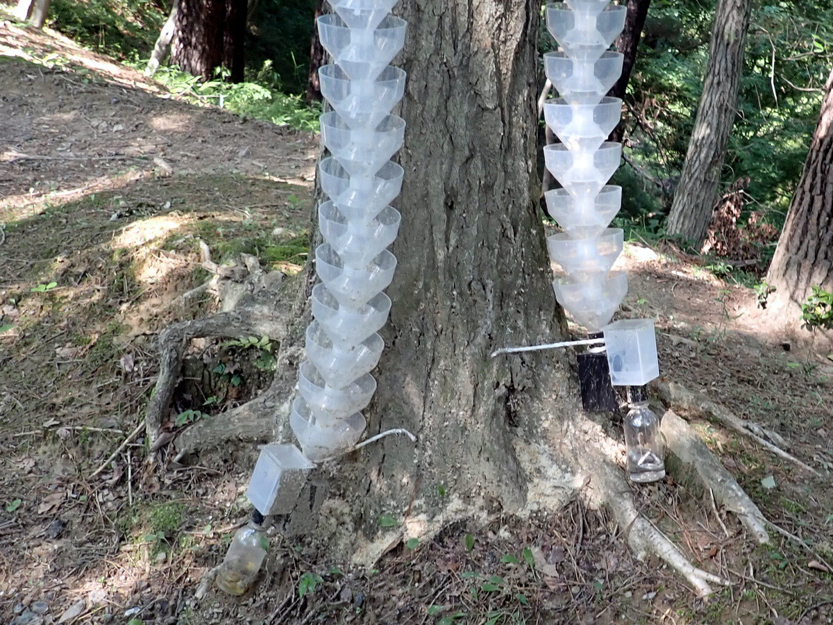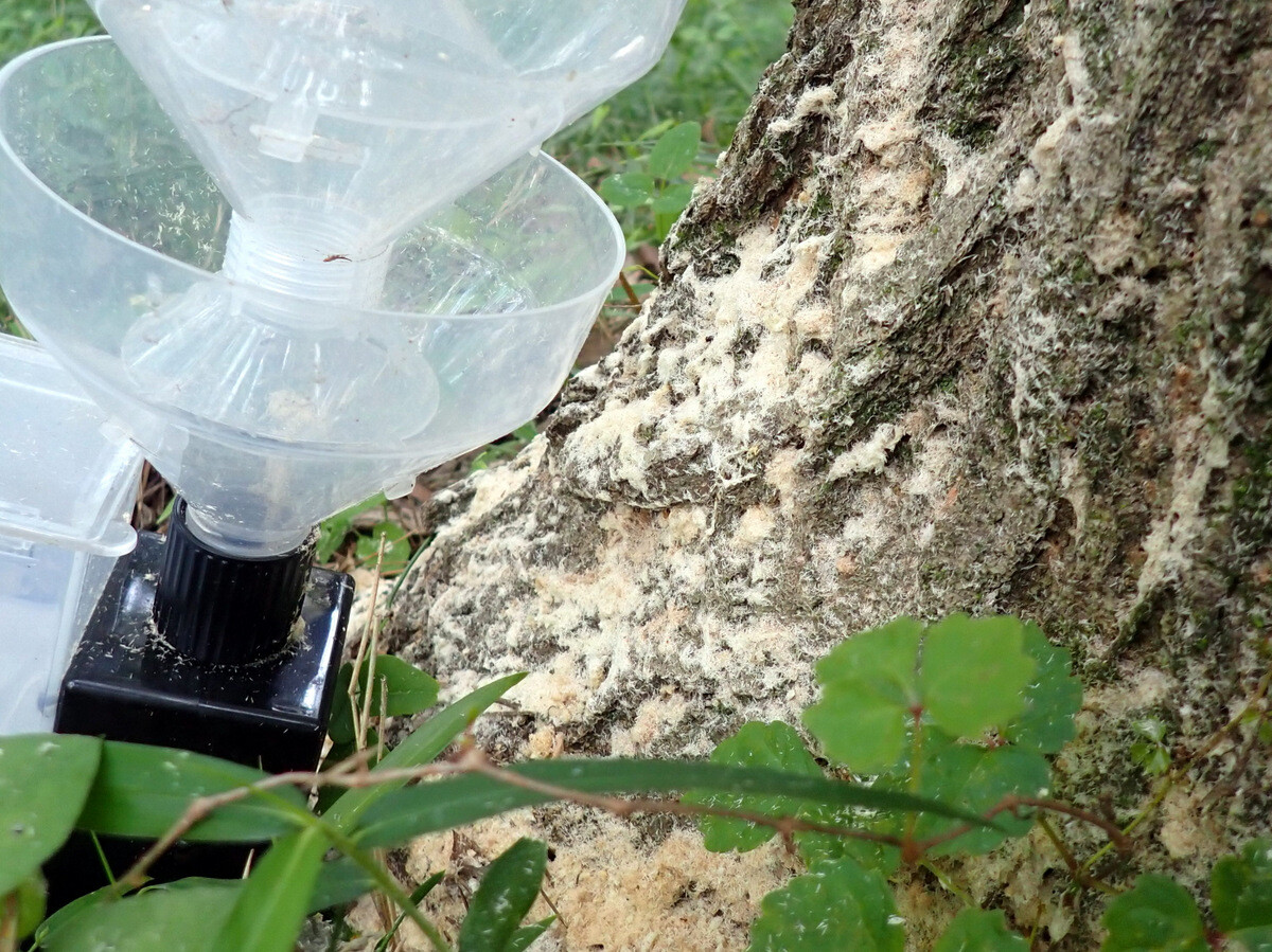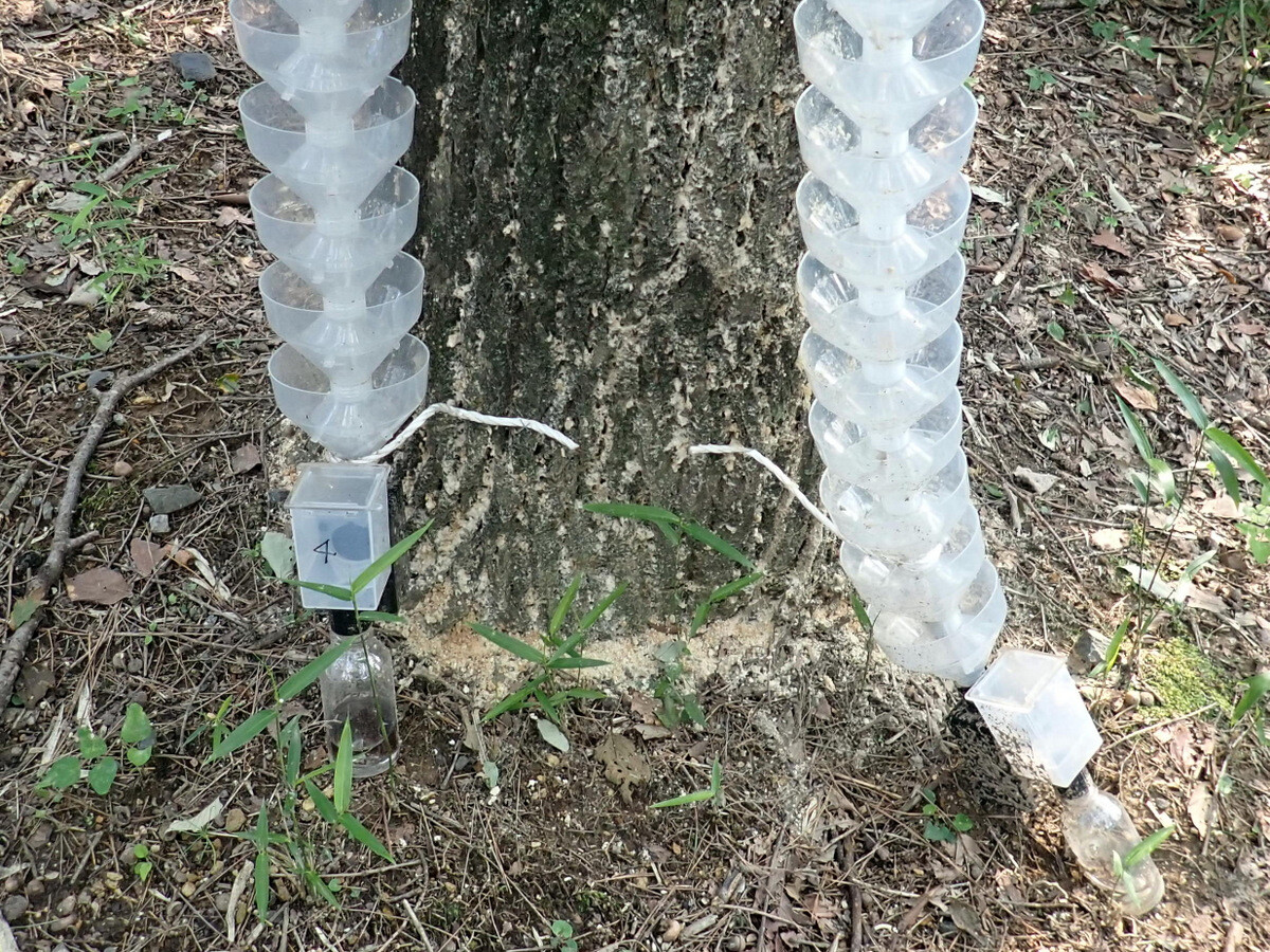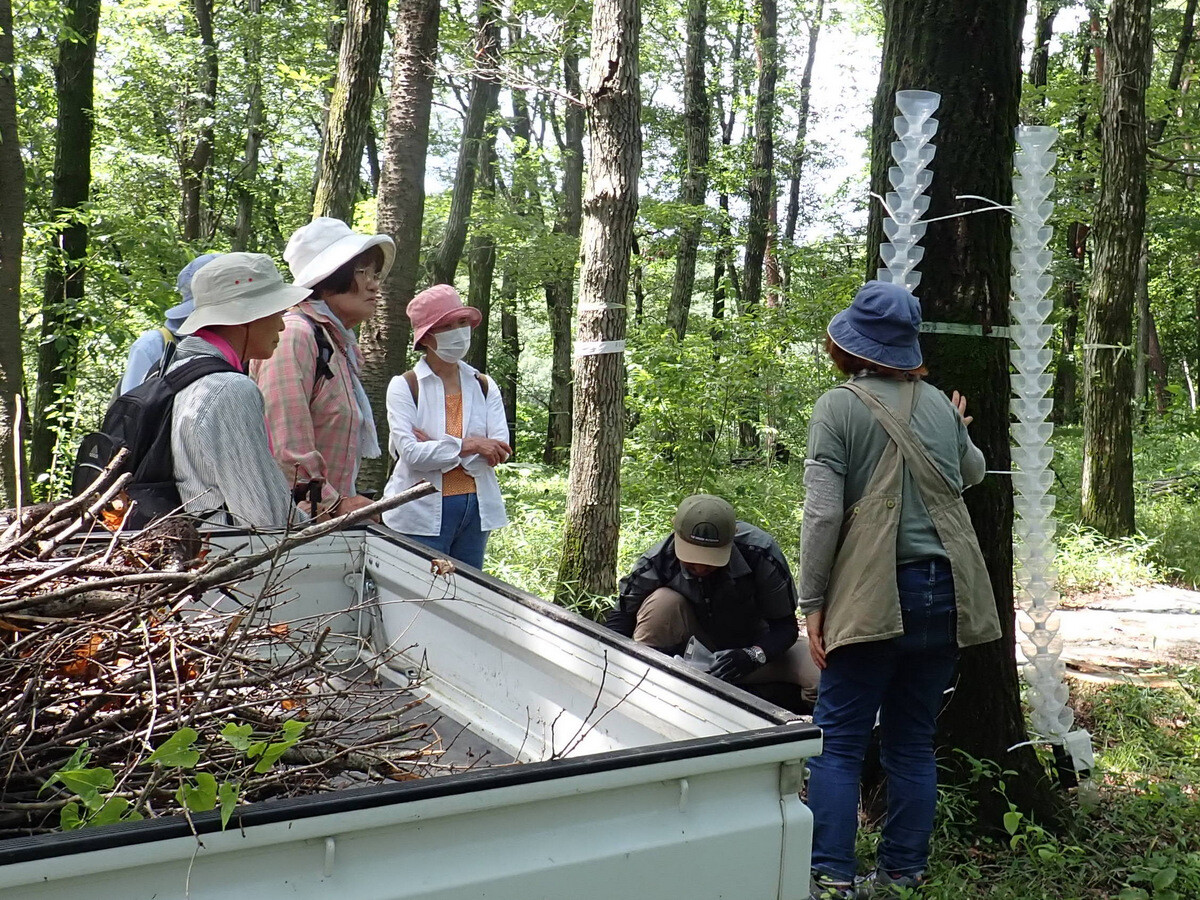 カシナガトラップのエタノールを補充し、カシノナガキクイムシを回収しました。