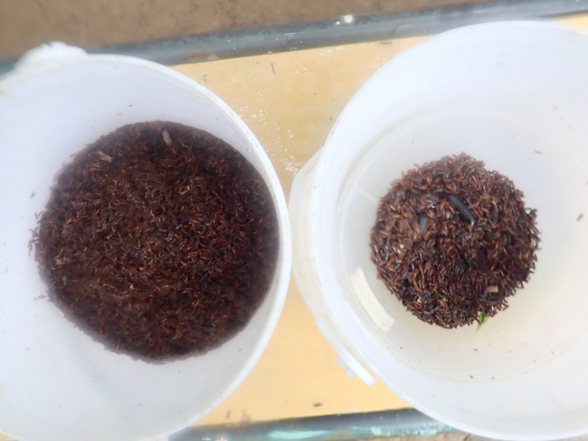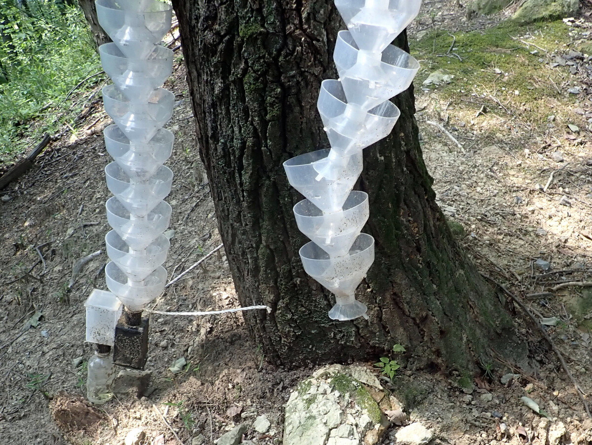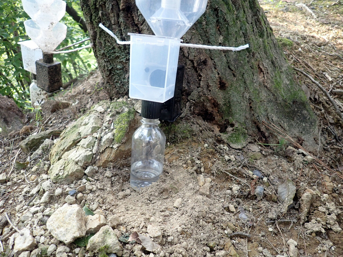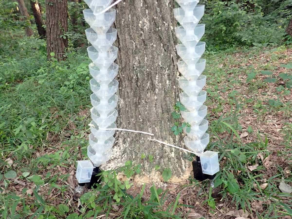 カシナガトラップのエタノールを補充し、カシノナガキクイムシを回収しました。