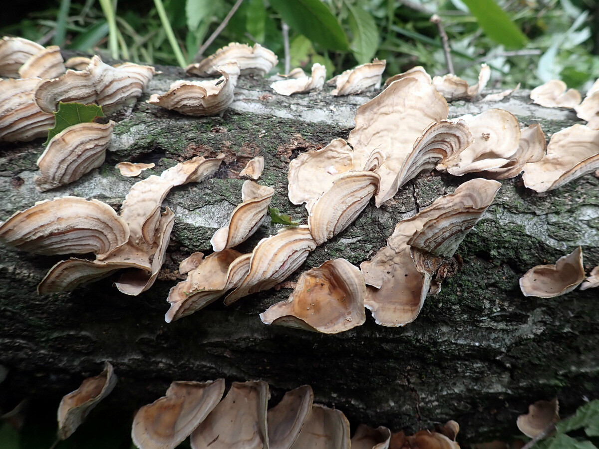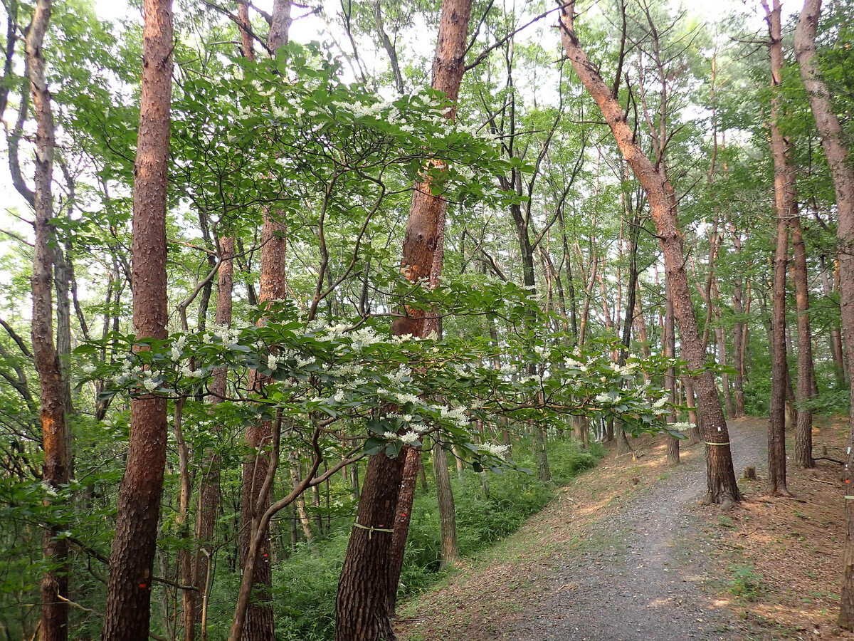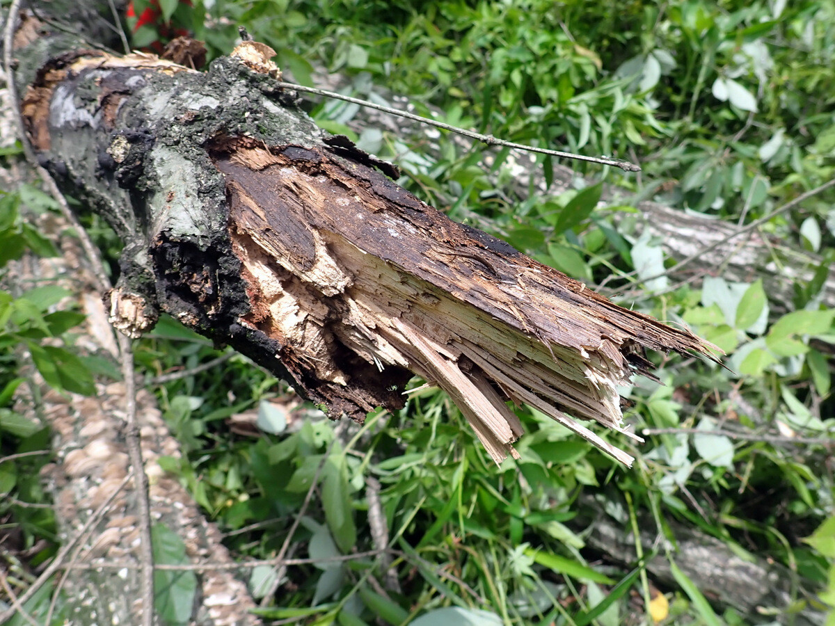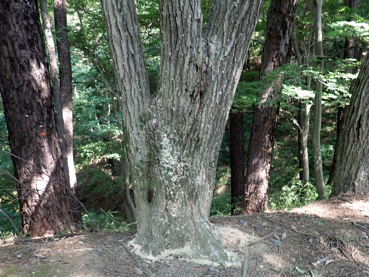 市民の森保全クラブ定例活動日。参加者は芦田さん、新井さん、江原さん、金子さん、木庭さん、木谷さん、木庭さん、鳥取さん、新倉さん、細川さん、丸山さん、鷲巣さん、Hikizineの12名。トラップの保守点検・カシナガ回収、刈払機で更新・皆伐エリアの篠刈り・アカメガシワなどの除伐、作業道・南向き斜面の草刈り、樹冠上部が腐朽して折損して作業道に落下する危険がある2本に株立ちしているコナラの1本の伐採をしました。