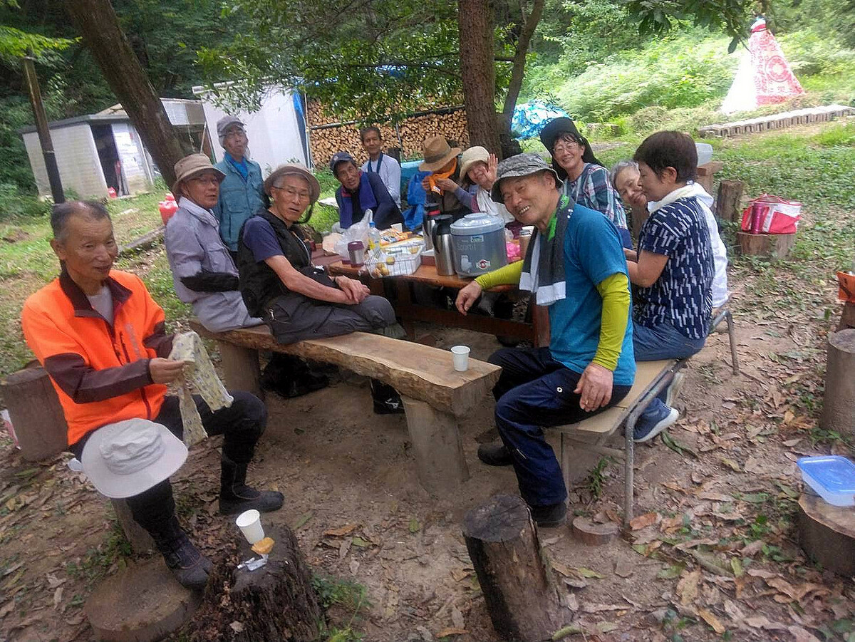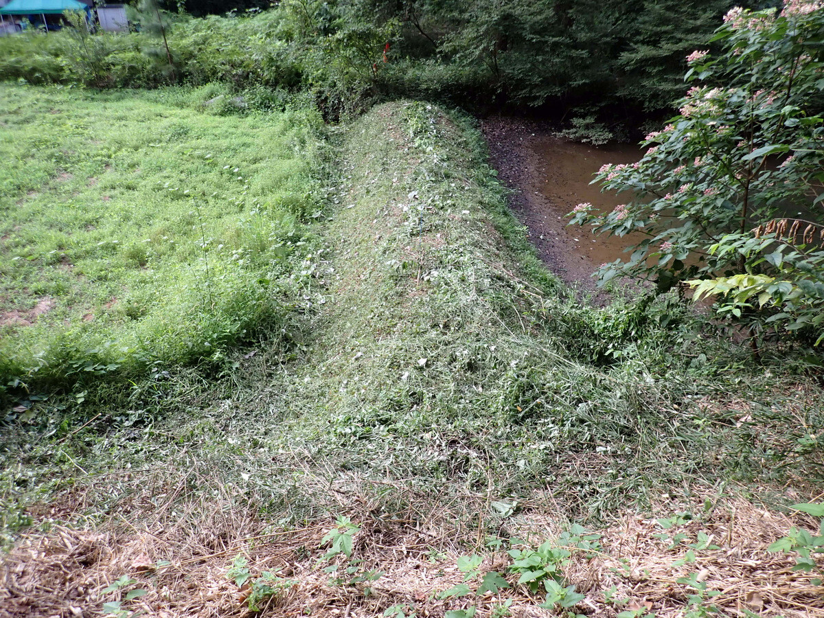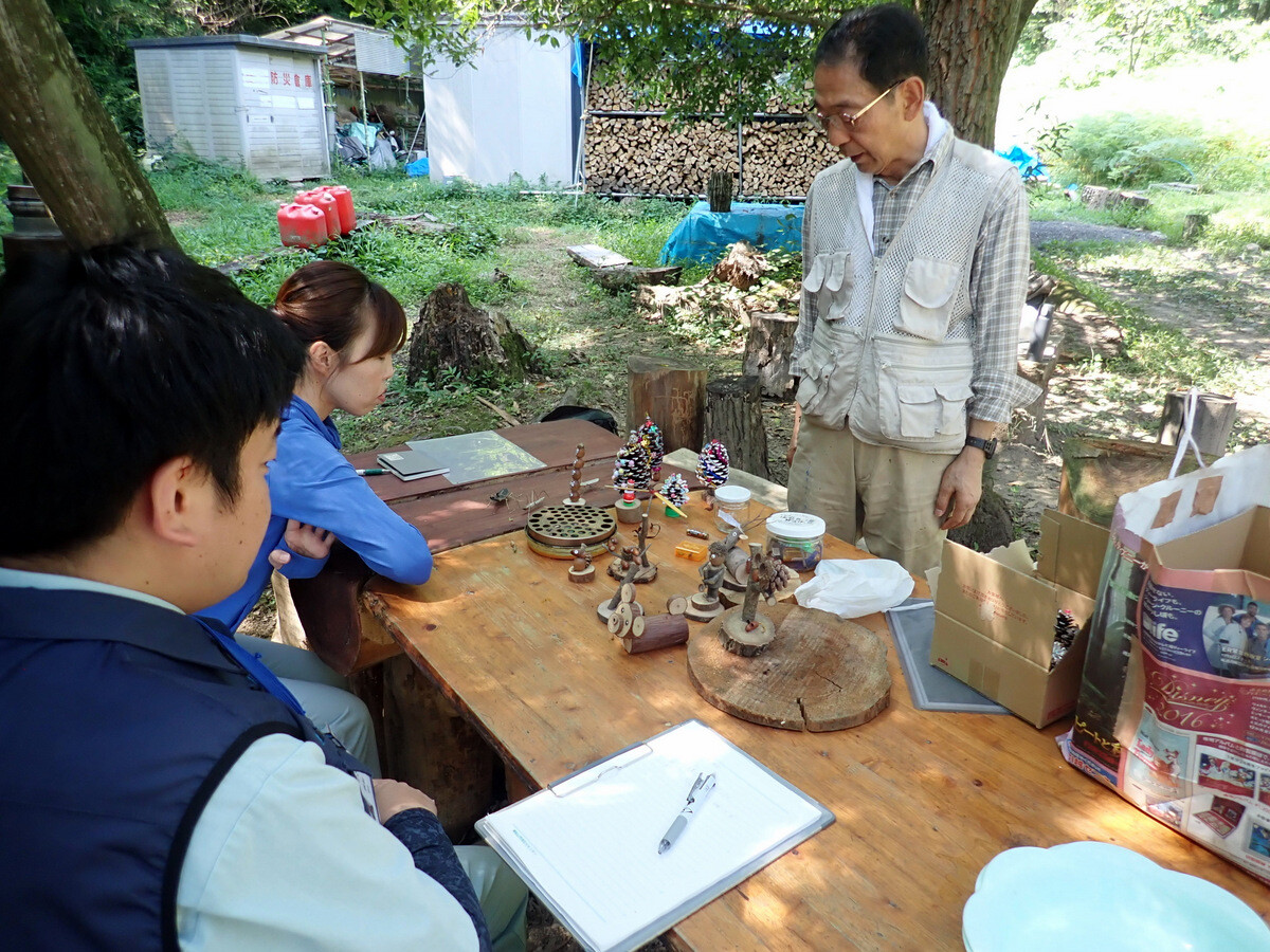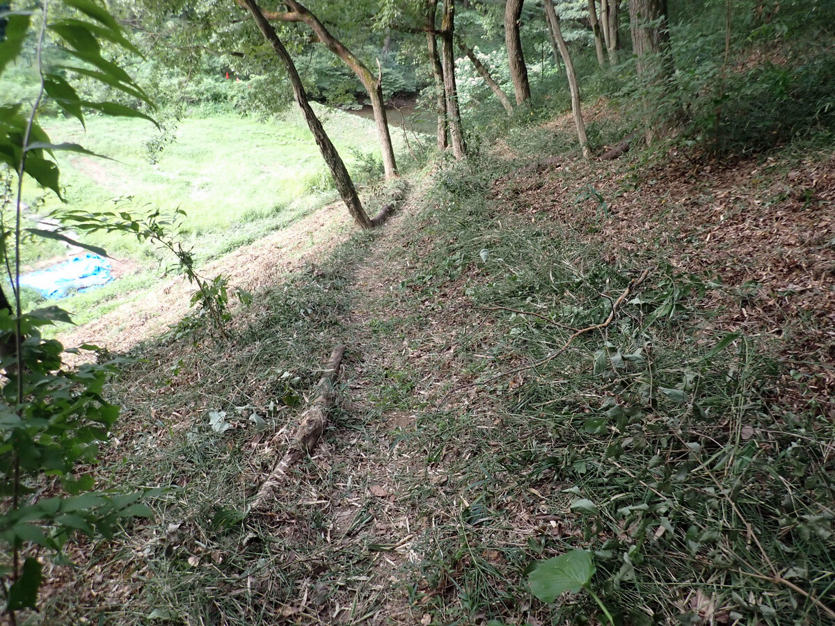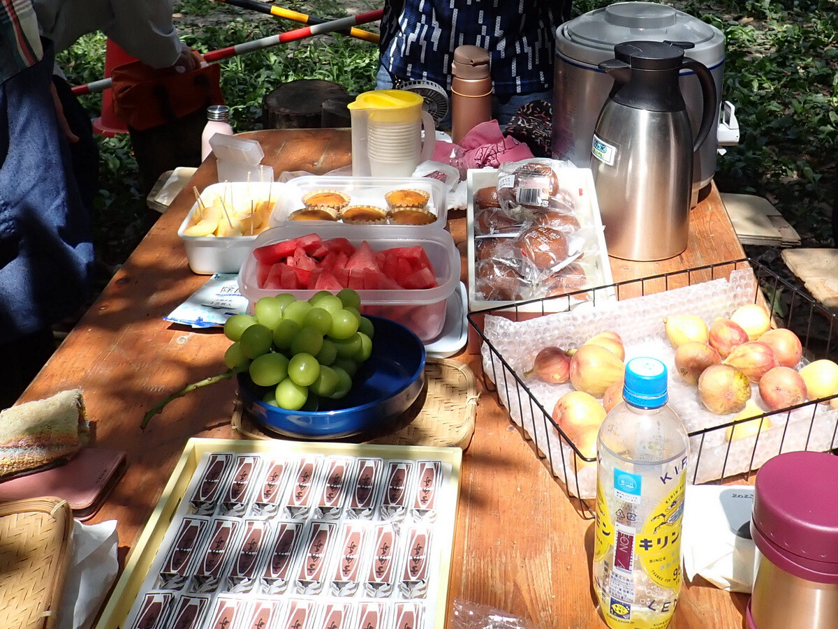 猛暑が続いています。市民の森保全クラブ、8月最初の活動日。参加者は芦田さん、新井さん、江原さん、金子さん、木谷さん、鳥取さん、新倉さん、細川さん、丸山さん、鷲巣さん、渡部さん、Hikizineの12名。炎天下での作業を避けて尾根の道の四阿付近で活動しました。10月21日に市民の森で実施される文化まちづくり公社主催『自然学習ウォーキング 市民の森であそぼう!』で市民の森保全クラブが実施する「森の作業体験 伐採したコナラの枝をノコギリで切ってみよう!」で使うコナラ枯死木選びました。当日はボッシュ林-青木ノ入-入山沼から現場に来るコースが設定されています。ボッシュ林内でプログラムを追加できないか、公社の原島さん、岩崎さんと渡部さん、Hikizineで検討しました。