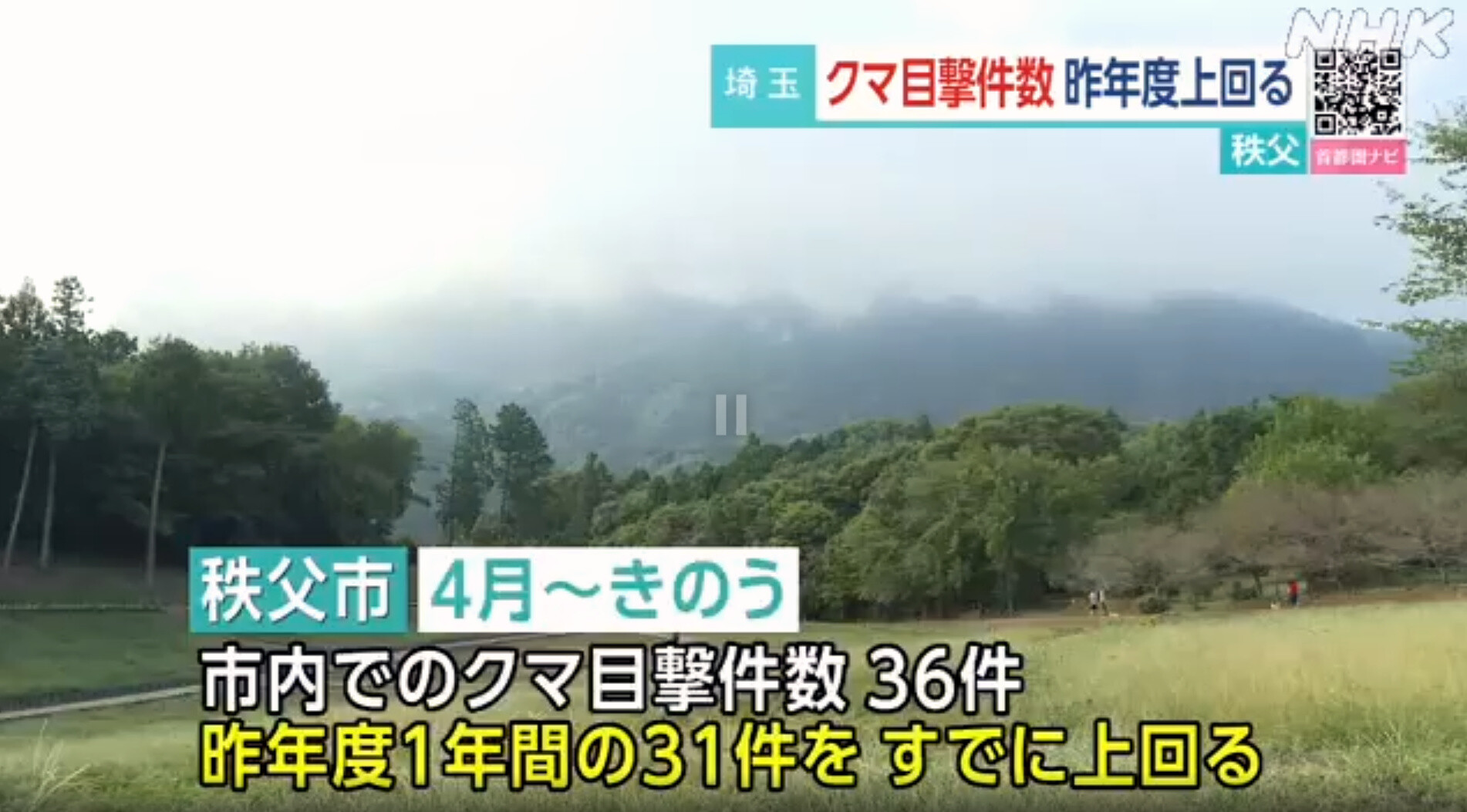 8月22日のNHK首都圏ニュースで「埼玉 秩父市 クマ目撃件数36件 注意呼びかけ」が報道され、NEWS WEBに掲載されています。