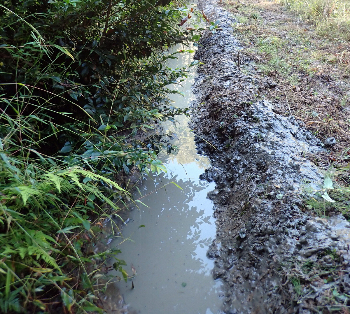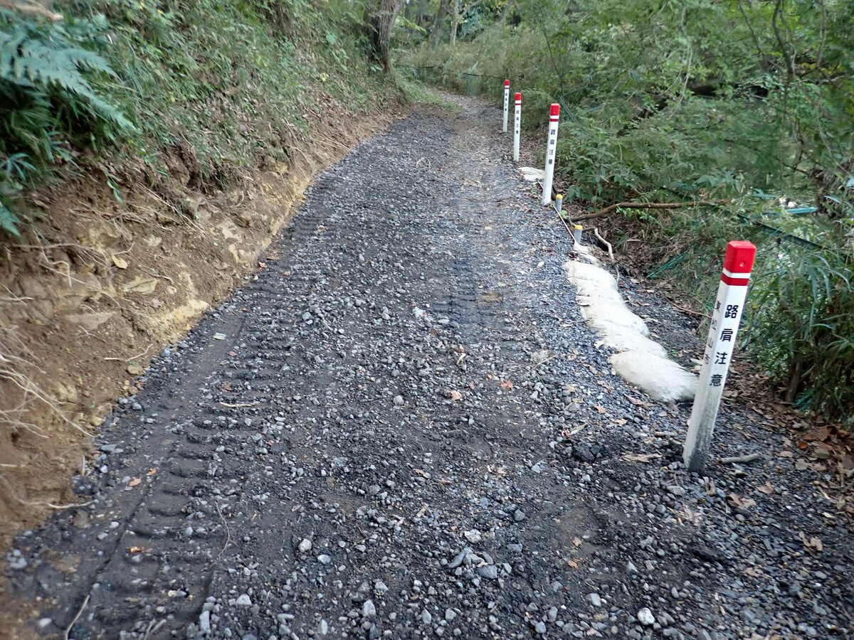 まちづくり公社に要望していた①市が昨年5月2日に入山沼の安全対策として実施した単管パイプ策設置により道幅が狭くなり、工事後に軽トラが奥に入れなくなった谷の道の入口付近、②市民の森に降った雨水が作業道の上を流れて岩殿F地区に落ちている車両の要注意通行箇所の拡幅工事が公社によりユンボを使ってなされました。ありがとうございます。