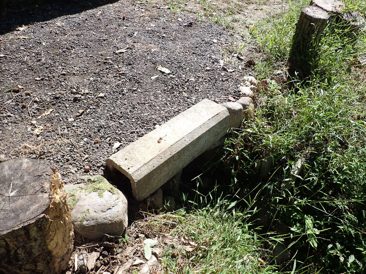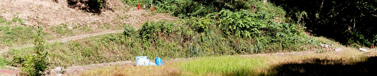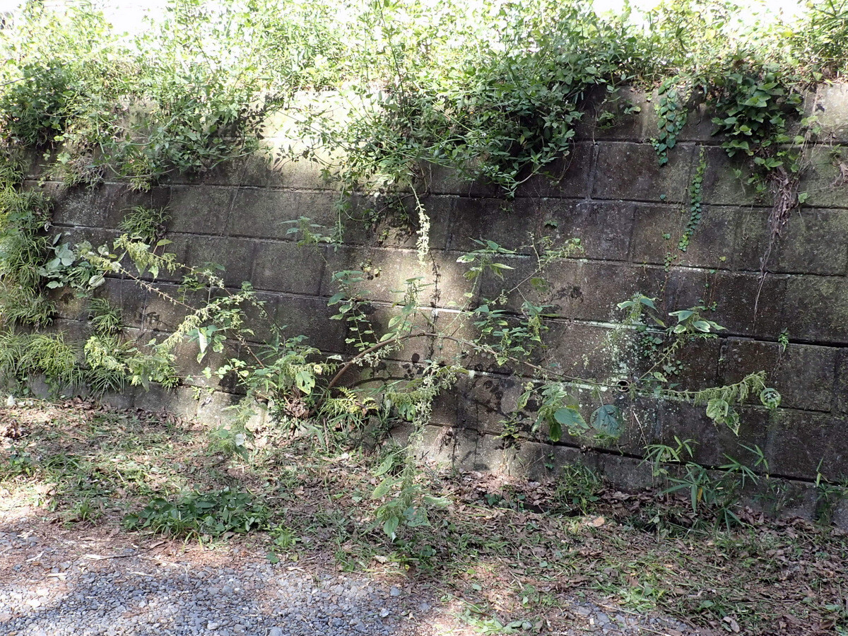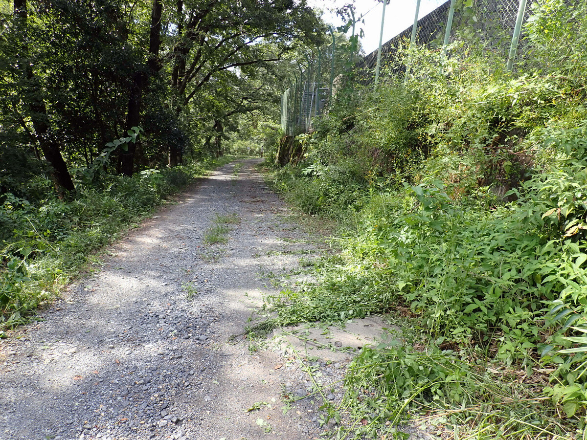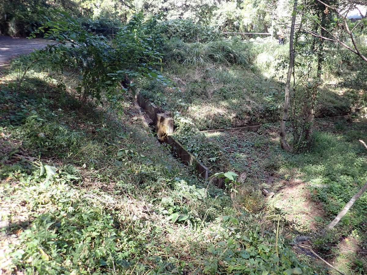 入山沼付近の学びの道の草刈りを始めました。コンクリート擁壁とフェンスがある区域のU字溝が埋め込まれている場所です。今日は、道の上にはみ出している部分を刈りました。