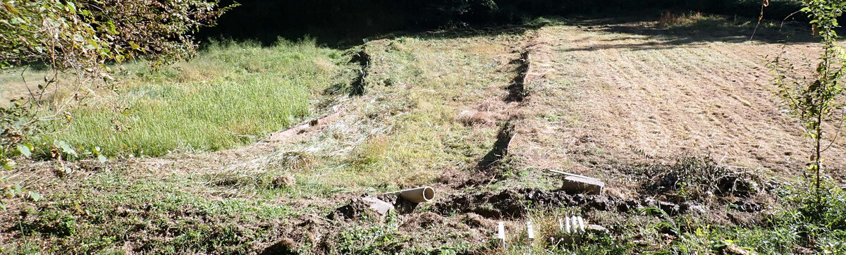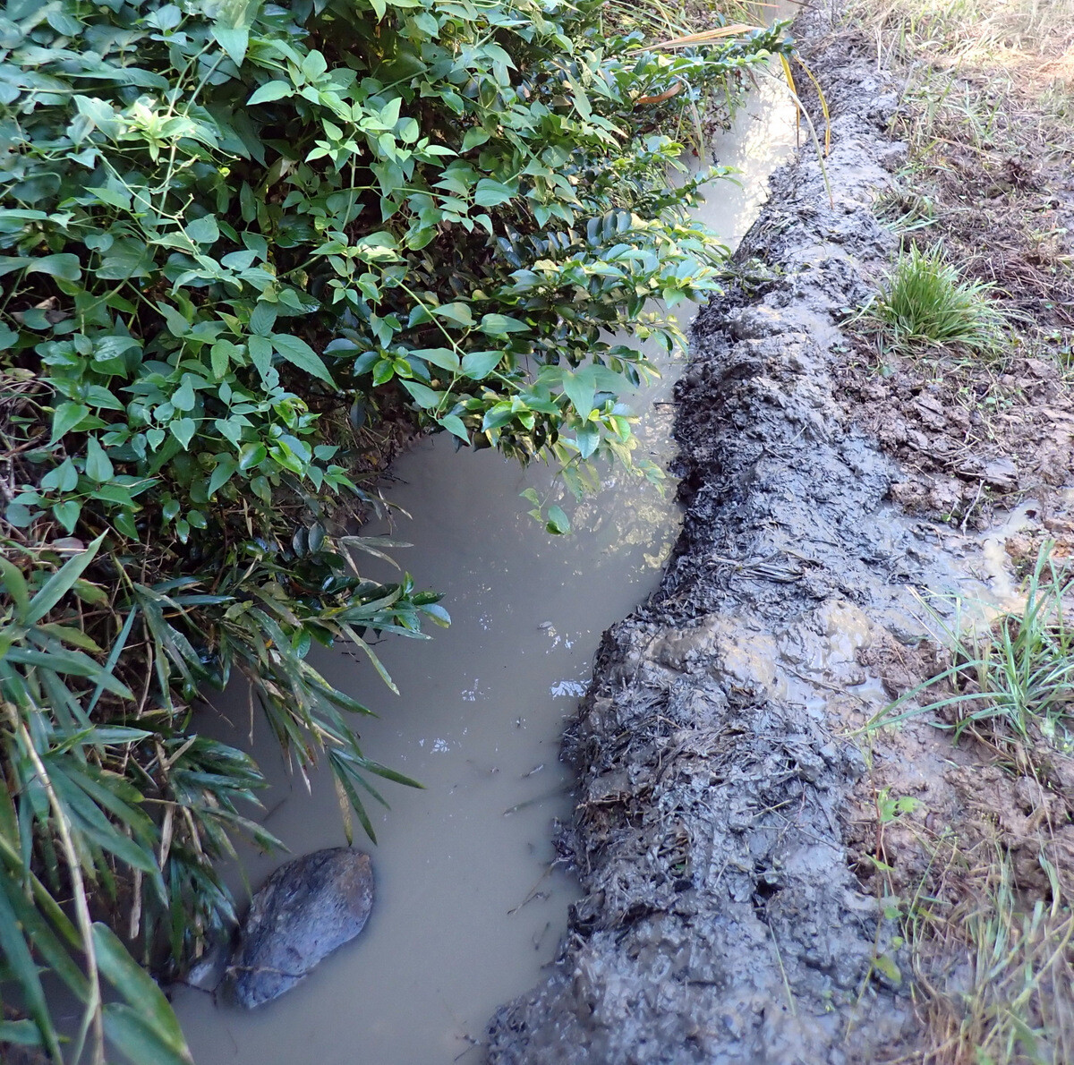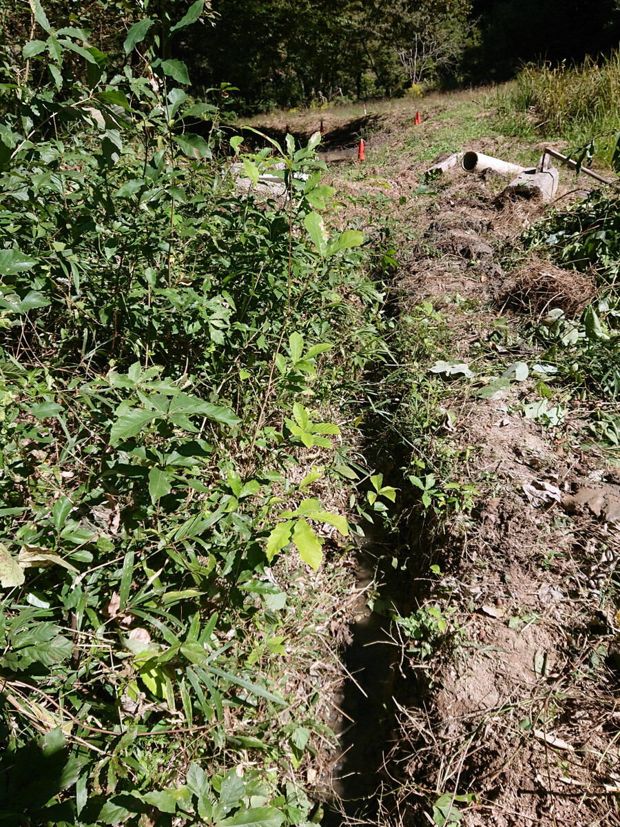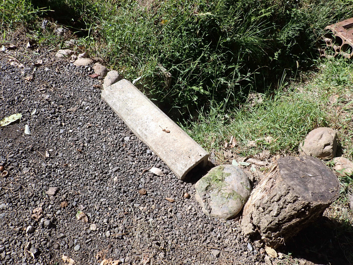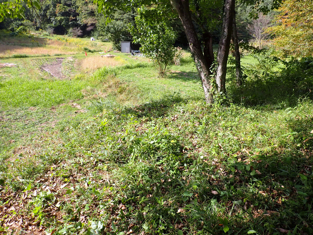 入山沼付近の学びの道の草刈りを始めました。コンクリート擁壁とフェンスがある区域のU字溝が埋め込まれている場所です。今日は、道の上にはみ出している部分を刈りました。