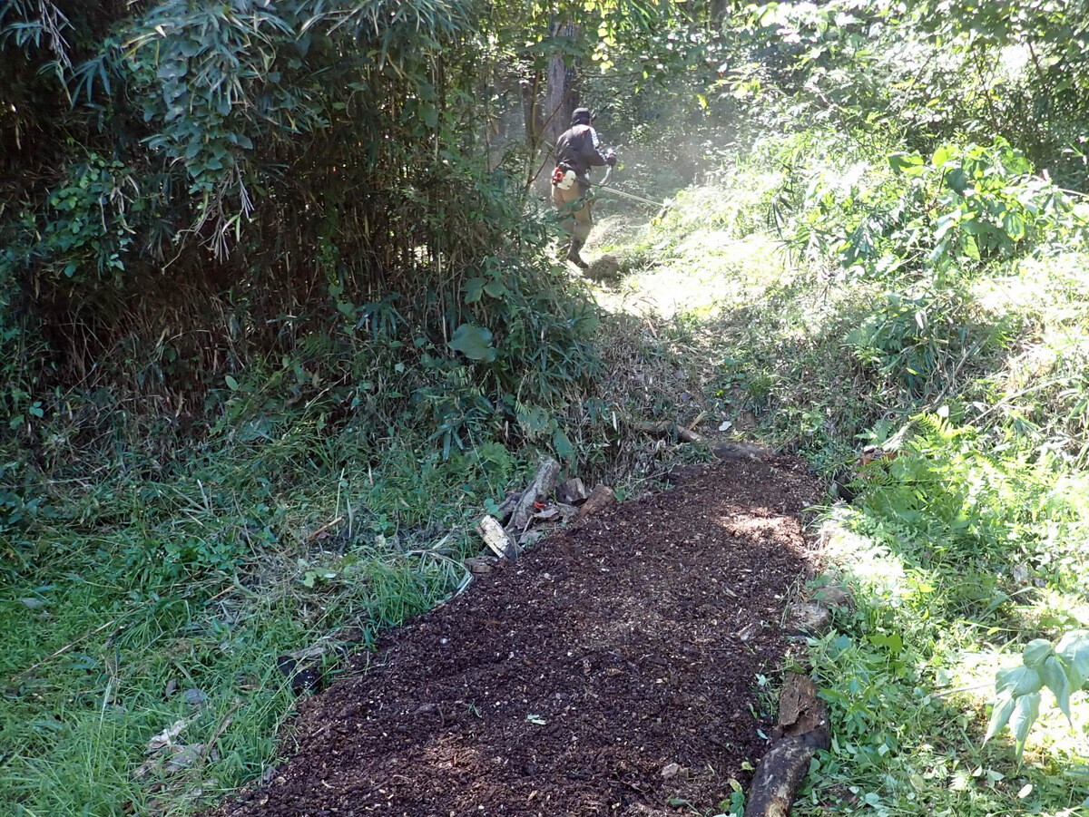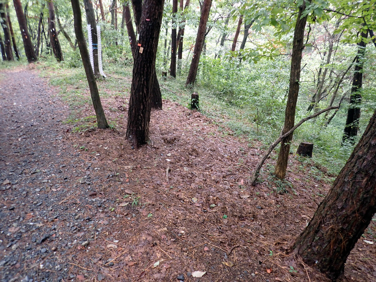 岩殿G地区・H地区と作業道をつなぐ近道ですが、しばらくは通行禁止です。裾刈りも見合わせです。