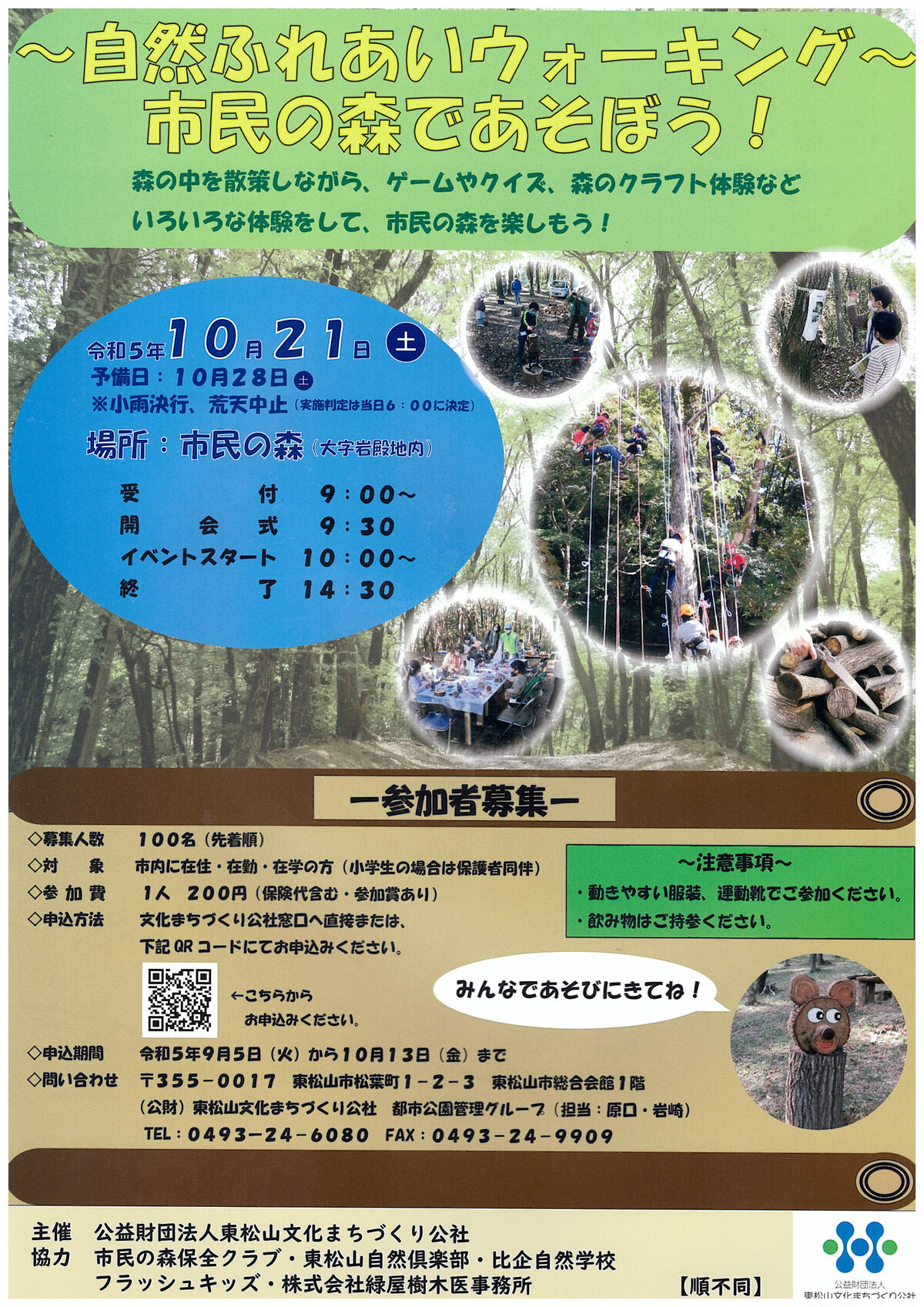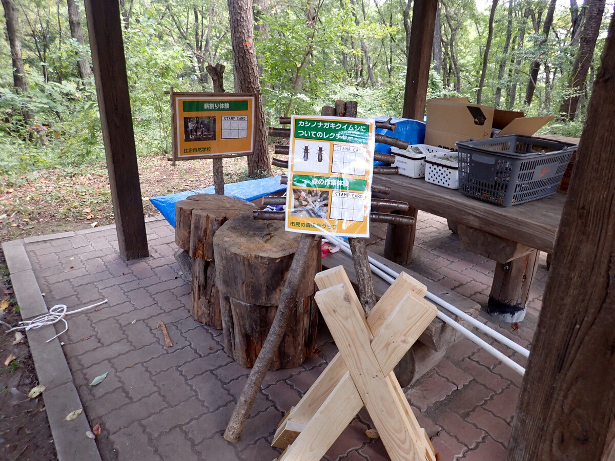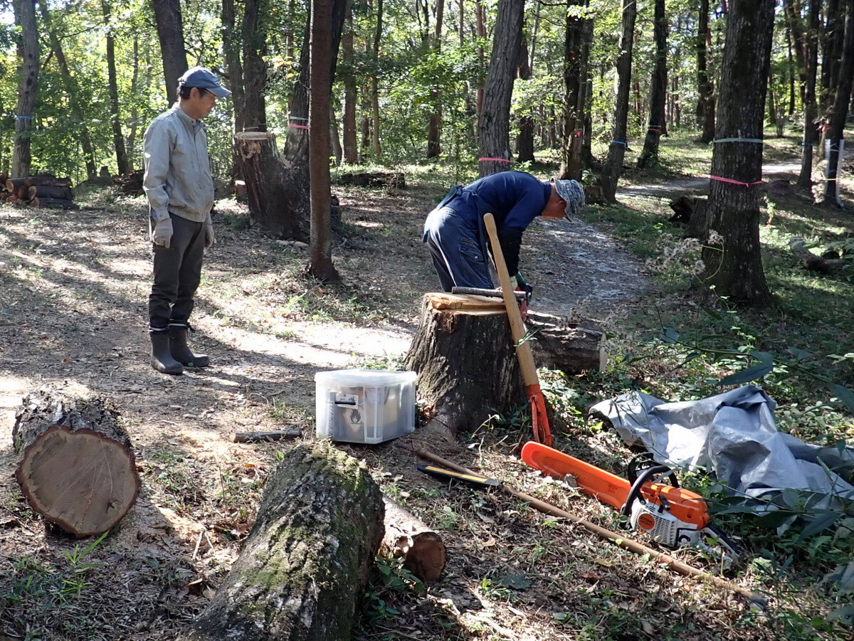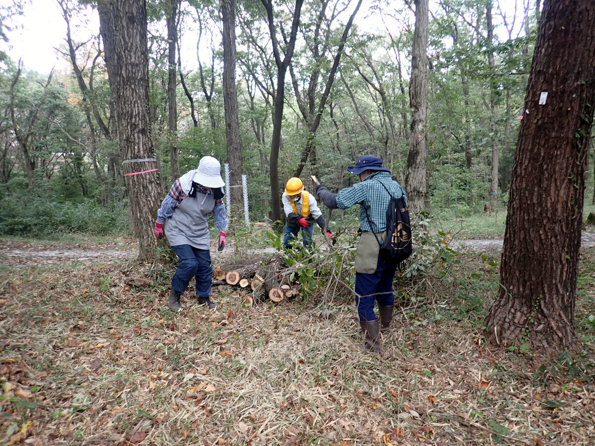 22日(日曜日)の定例活動日を変更し、明日実施される東松山文化まちづくり公社主催『自然ふれあいウォーキング 市民の森で遊ぼう』で市民の森保全クラブが担当する「森の作業体験」会場の準備と周辺の整備をしました。参加者は芦田さん、新井さん、江原さん、金子さん、木谷さん、木庭さん、鳥取さん、新倉さん、細川さん、丸山さん、鷲巣さん、渡部さん、Hikizineの13名でした。