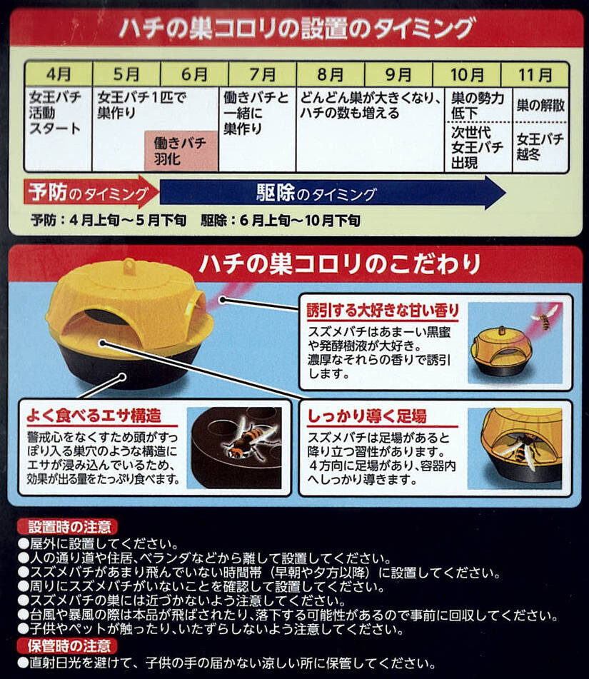 KINP社のHPに「スズメバチは単なる害虫ではなく、農林業分野では害虫を駆除してくれる益虫でもあります。単にスズメバチを殺してしまうだけでは生態系のバランスを崩すだけでなく、私たちの生活にも影響を及ぼします」とありました。