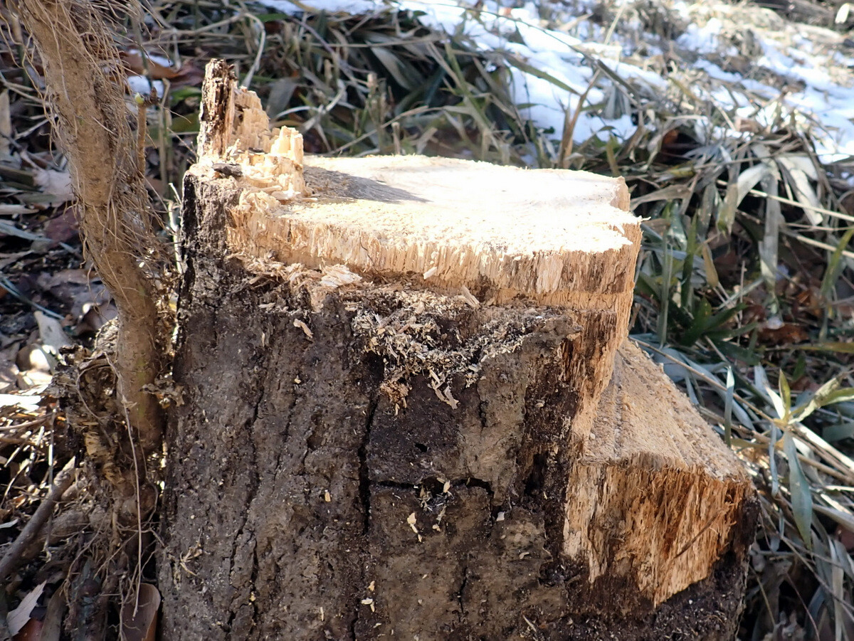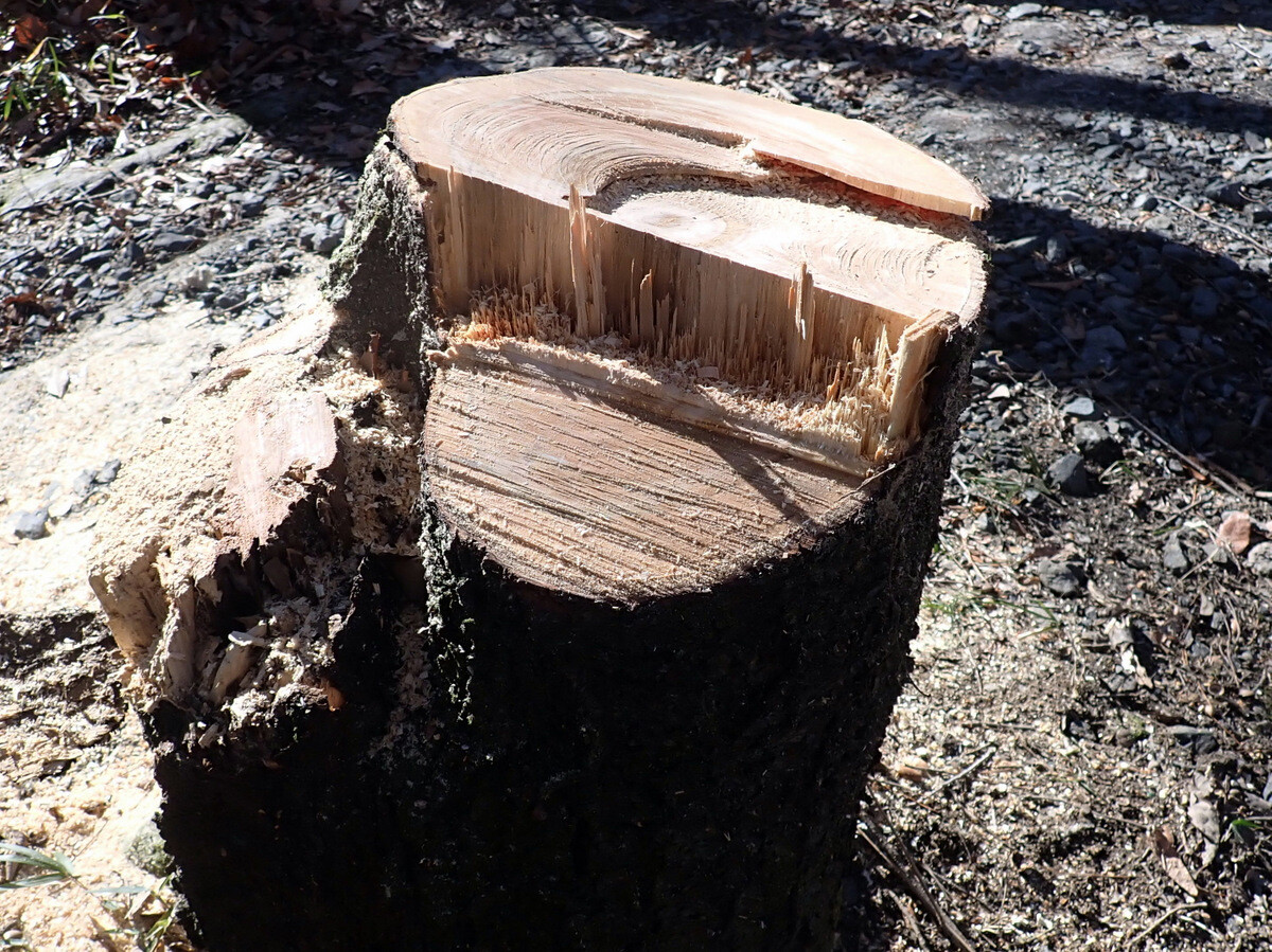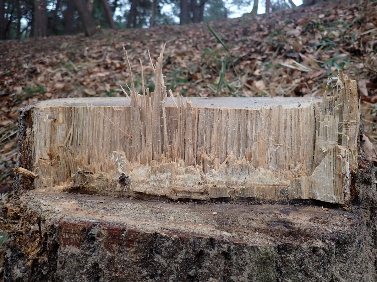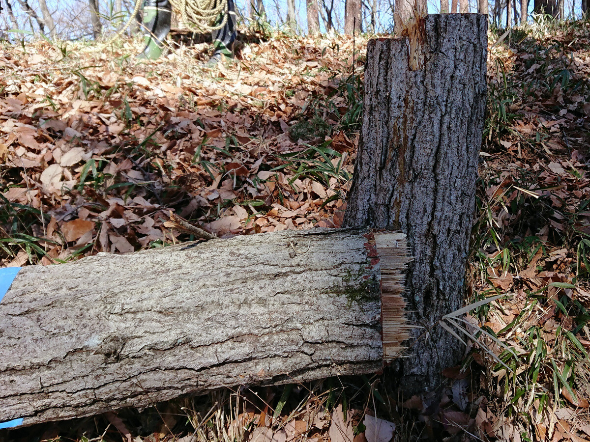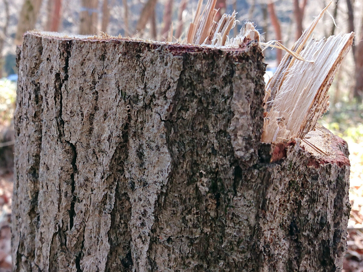 森林の脆弱性 根返り:根こそぎ倒れ地面がめくれる