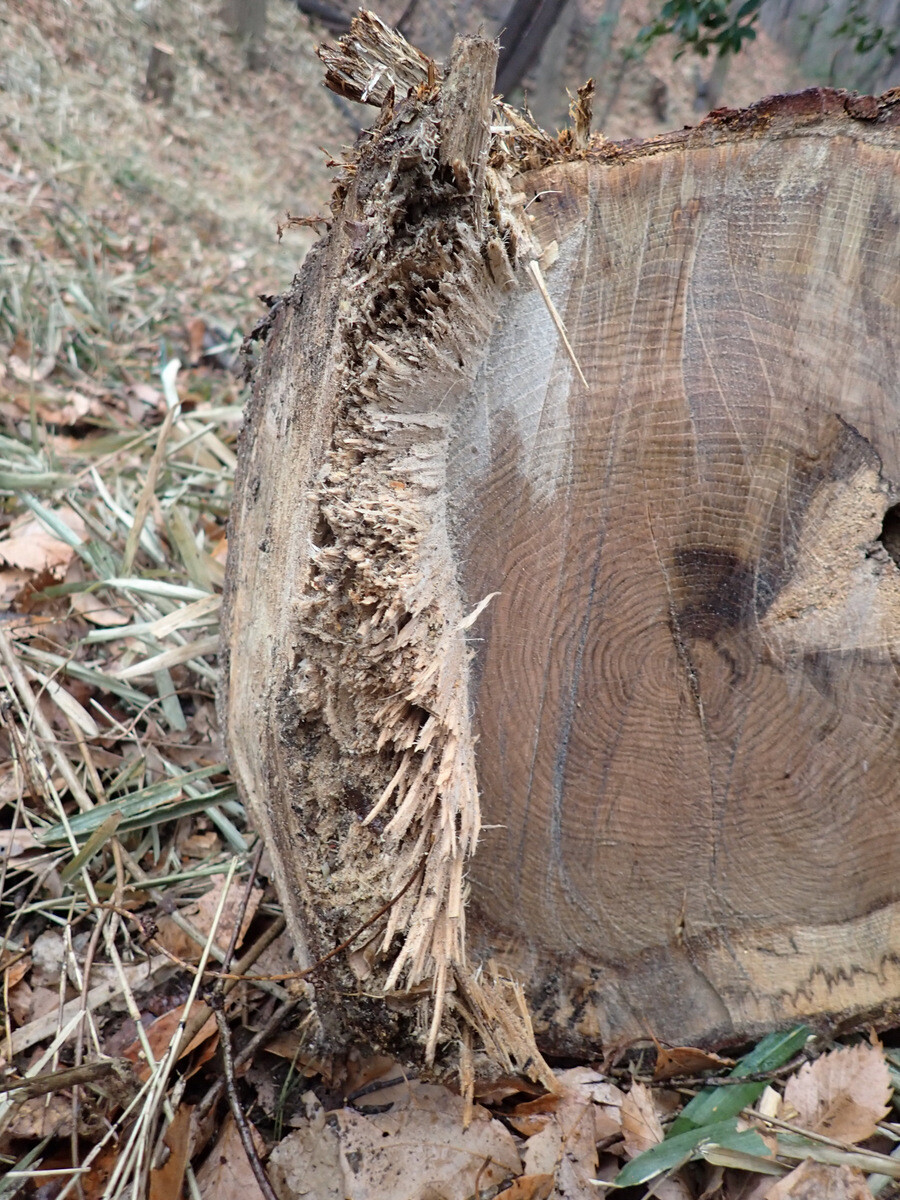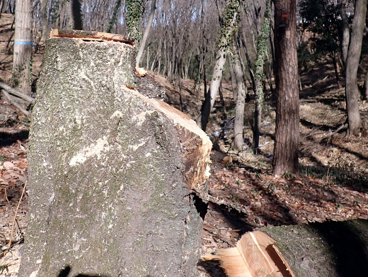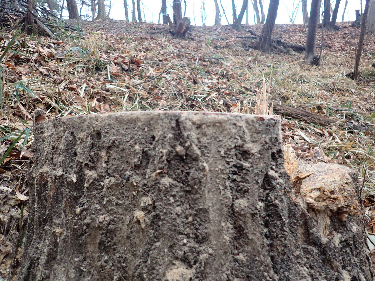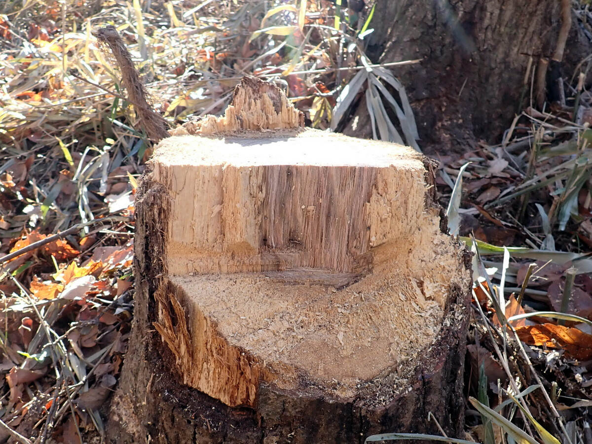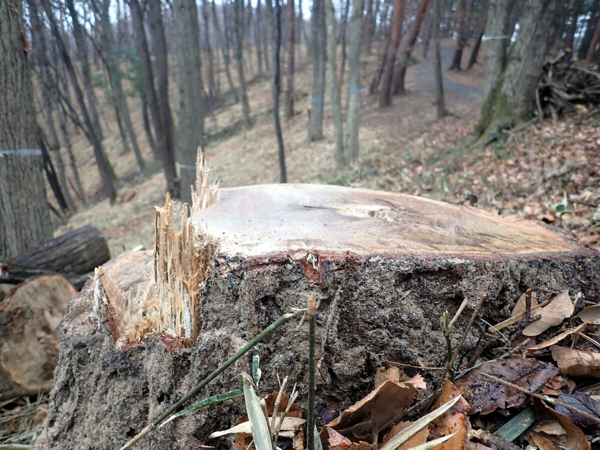 森林の脆弱性 根返り:根こそぎ倒れ地面がめくれる