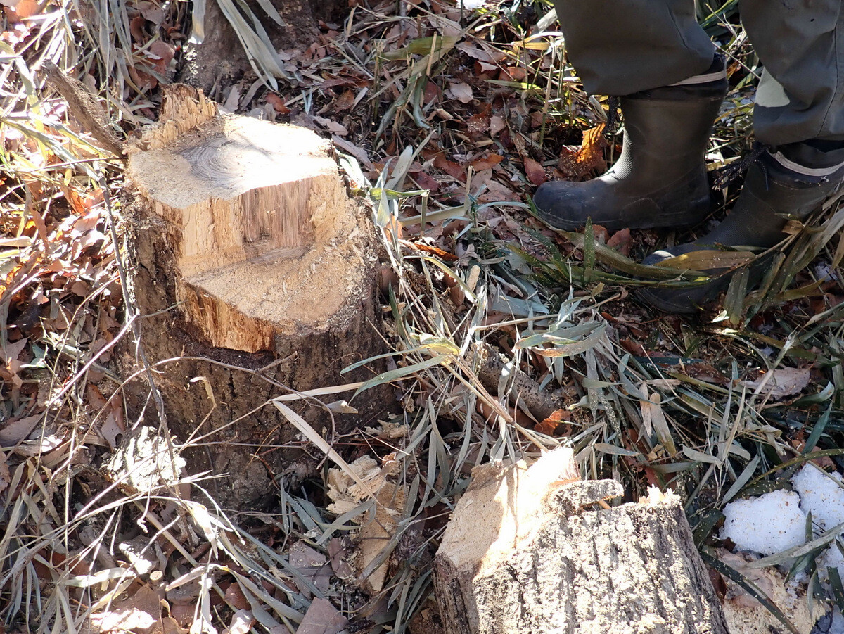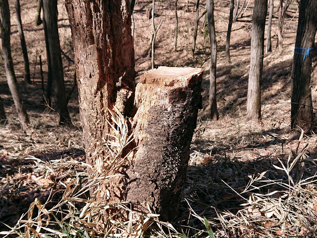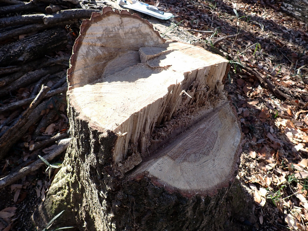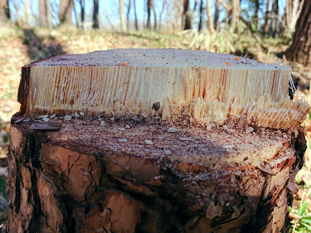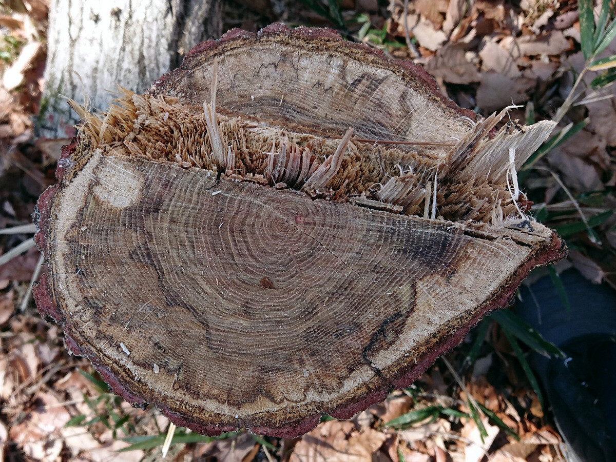 森林の脆弱性 根返り:根こそぎ倒れ地面がめくれる