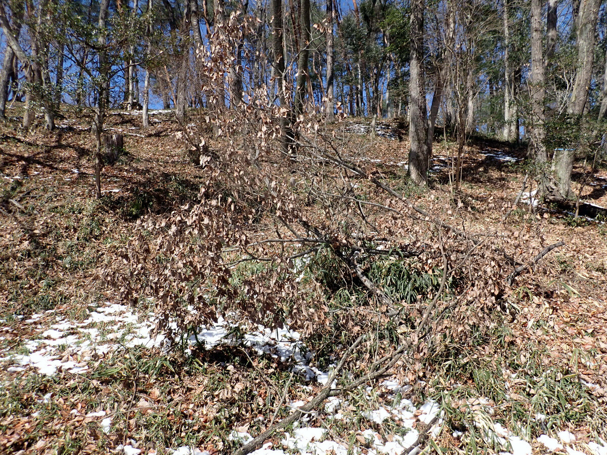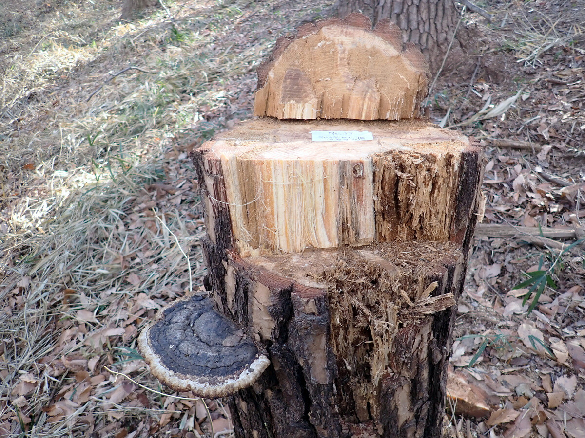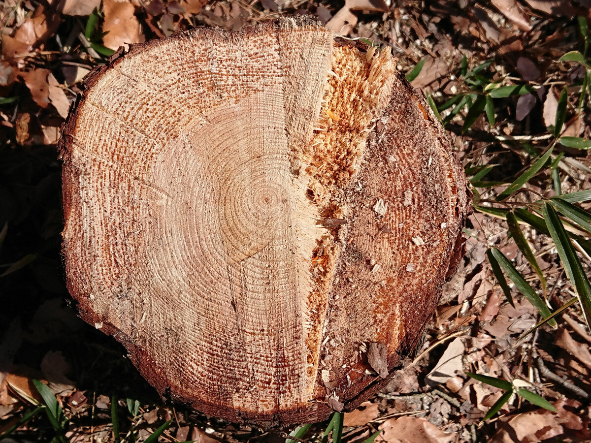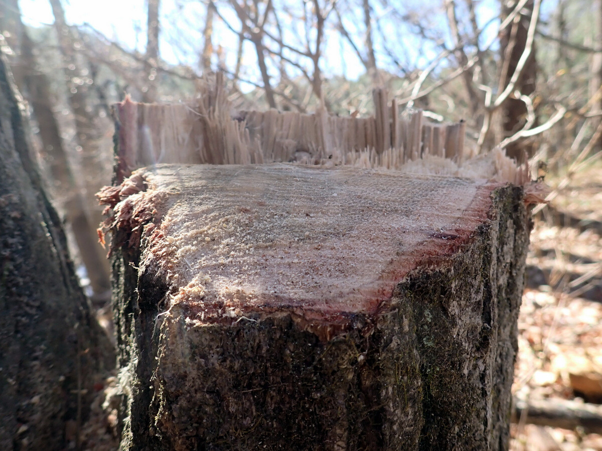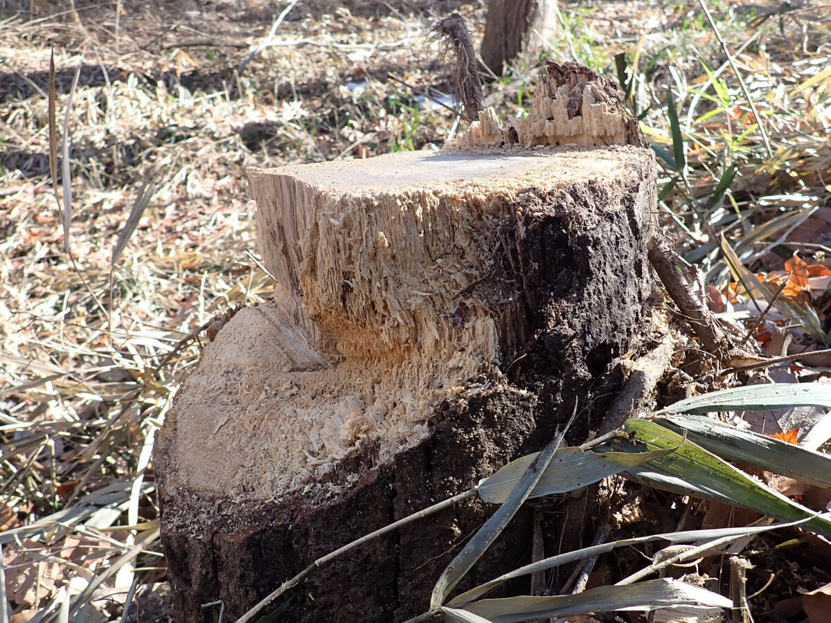森林の脆弱性 根返り:根こそぎ倒れ地面がめくれる